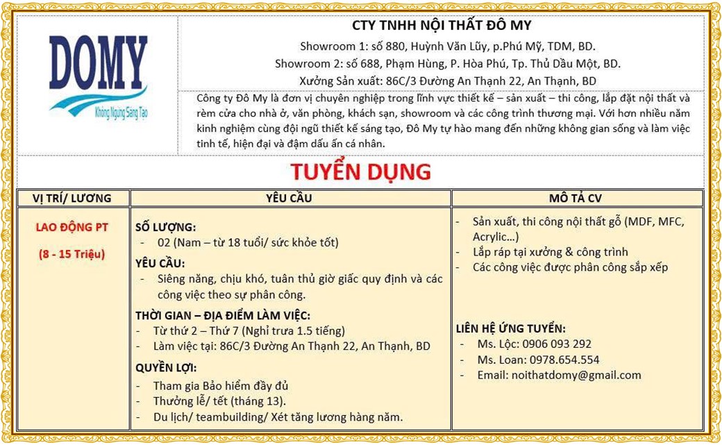 Key : “việc làm bình dương” ; “vieclambinhduong” ; “tuyendungvieclambinhduong” ; “viec lam binh duong” ; vieclambinhduong-ts. le kien cuong; “việc làm sản xuất bình dương” ; “vieclam binh duong” ; việc làm bình dương tiến sĩ lê kiên cường’ viec lam san xuat binh duong ; tìm việc làm bình dương