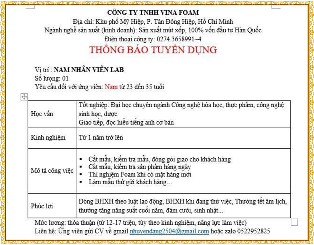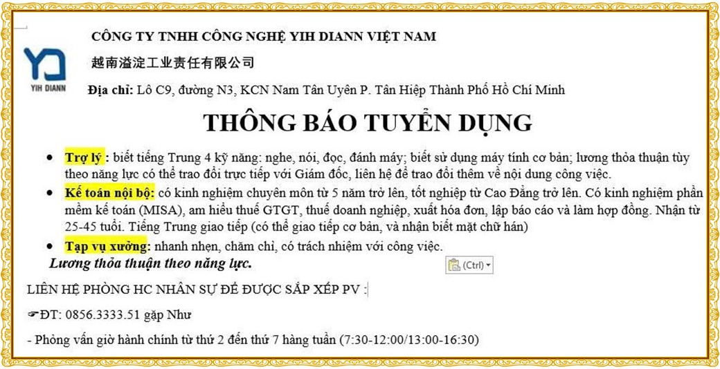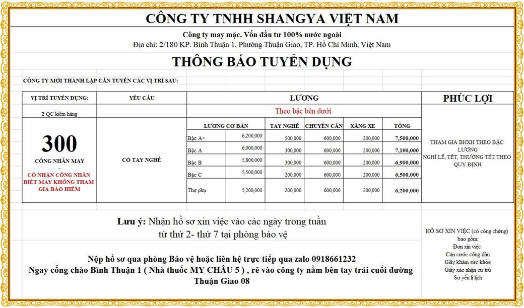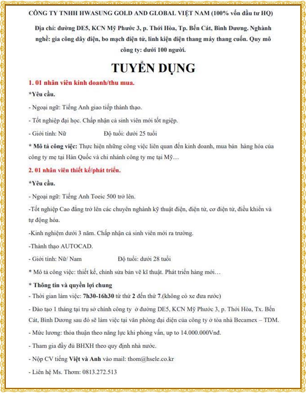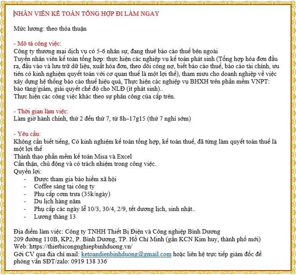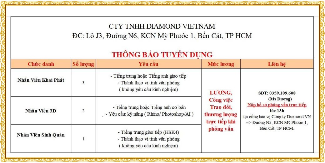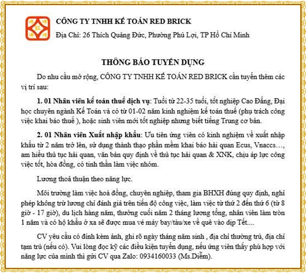 Note: THẬN TRỌNG KHI CÓ BẤT KỲ YÊU CẦU THU PHÍ TỪ PHÍA NHÀ TUYỂN DỤNG !