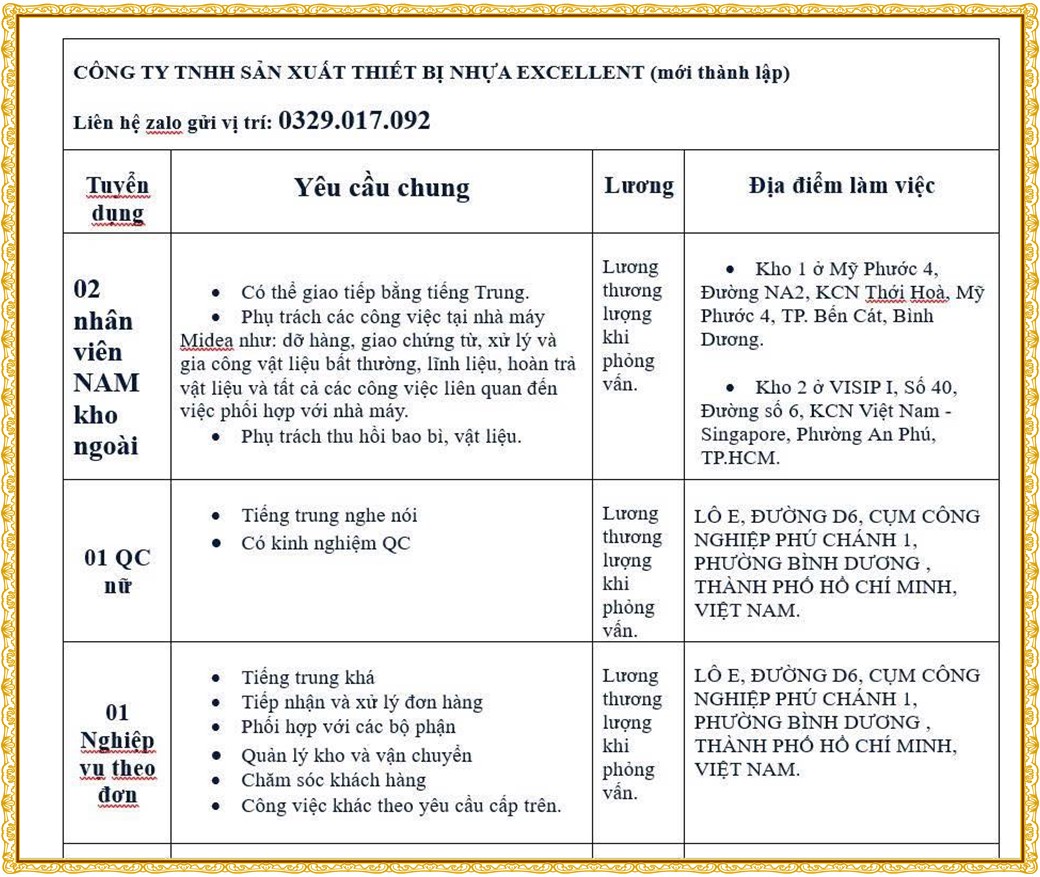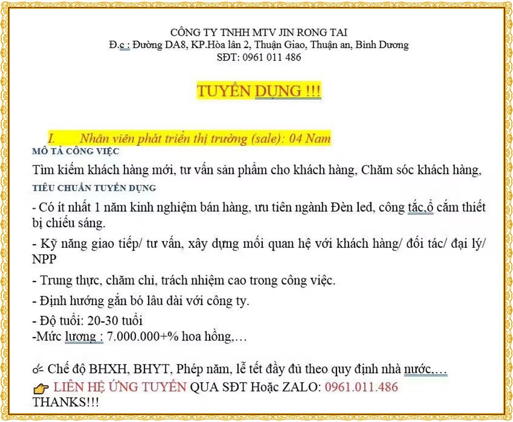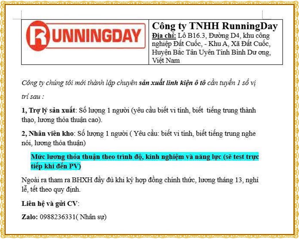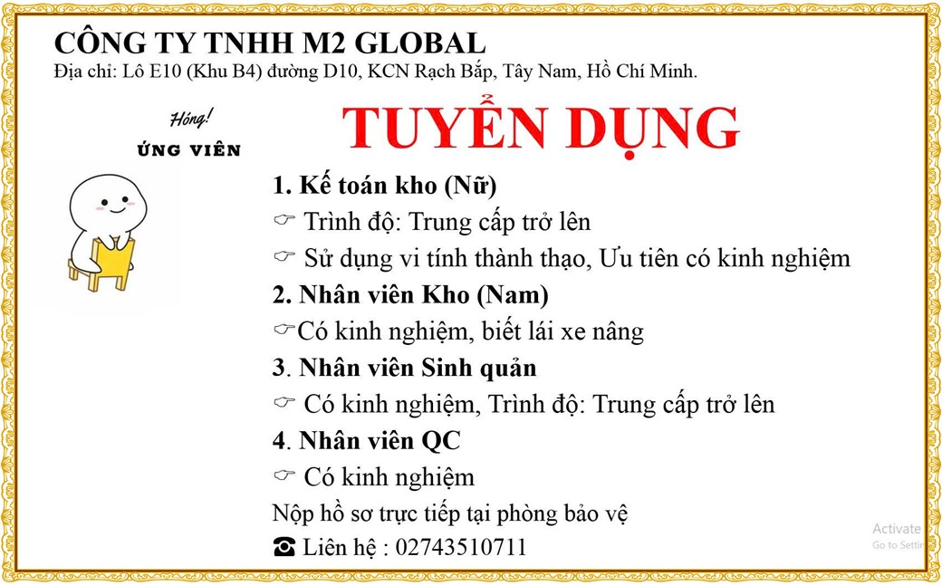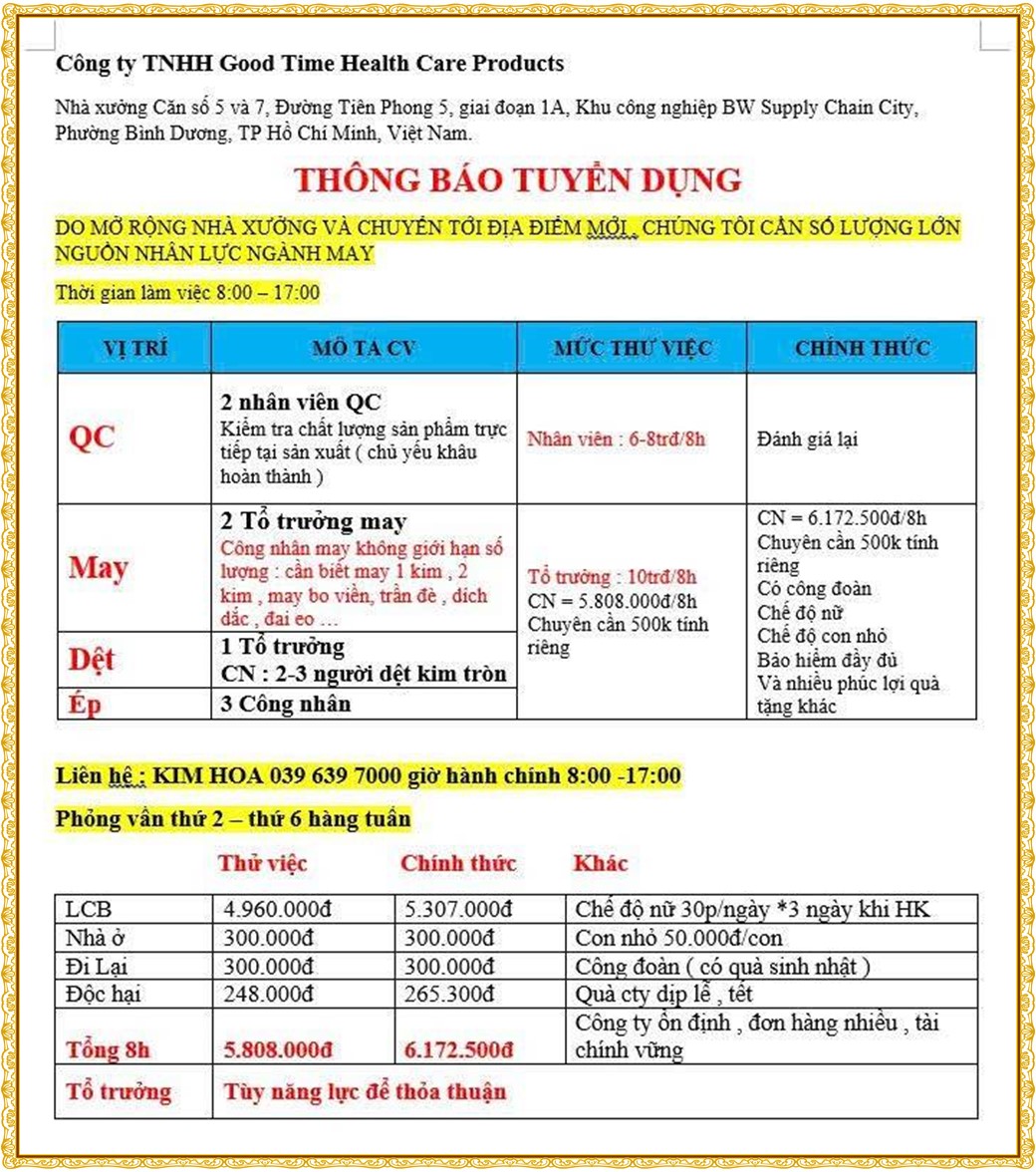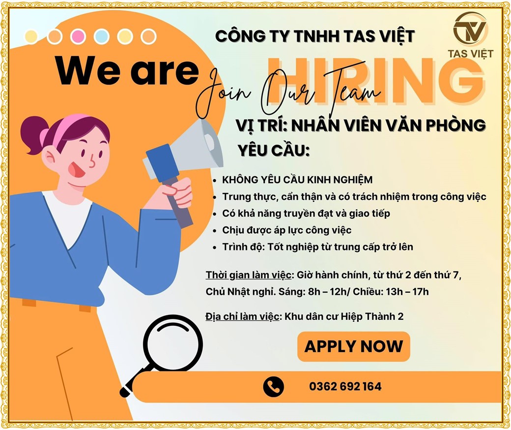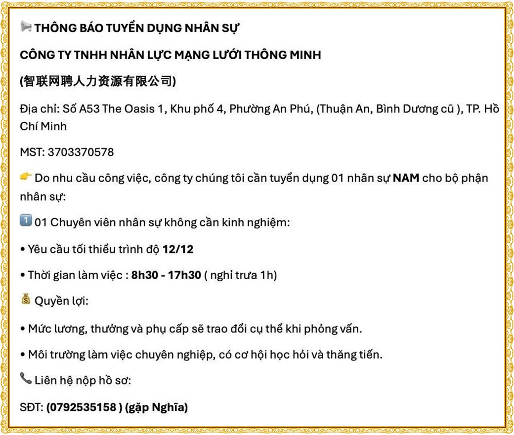 Note: THẬN TRỌNG KHI CÓ BẤT KỲ YÊU CẦU THU PHÍ TỪ PHÍA NHÀ TUYỂN DỤNG !