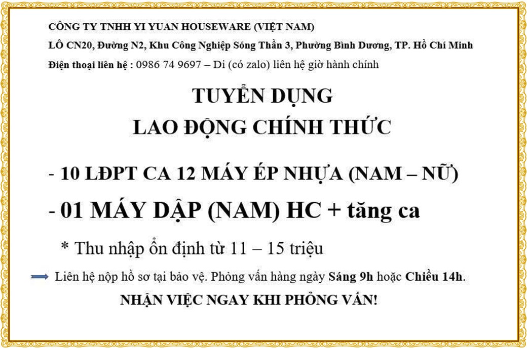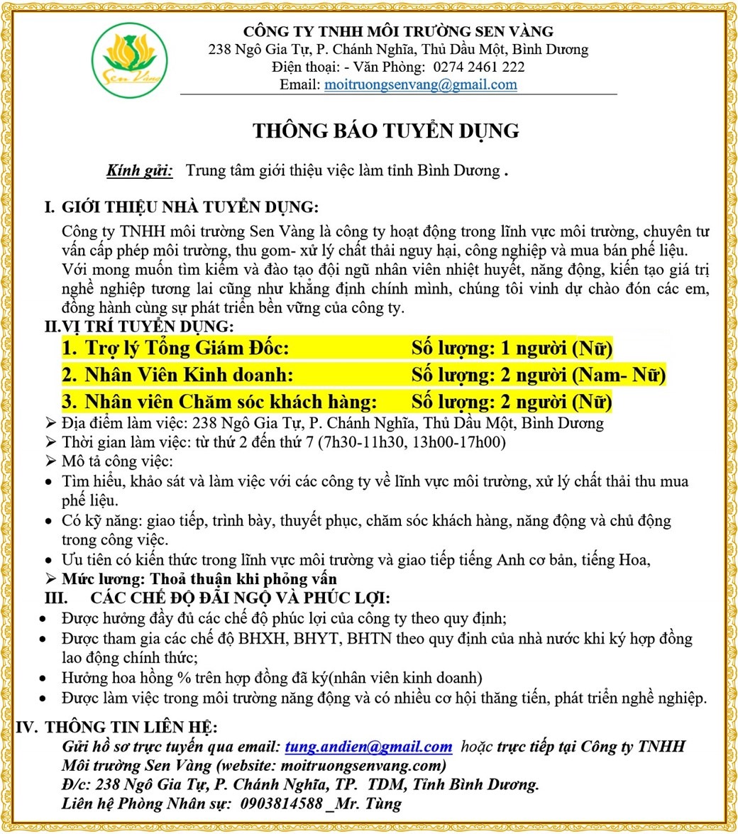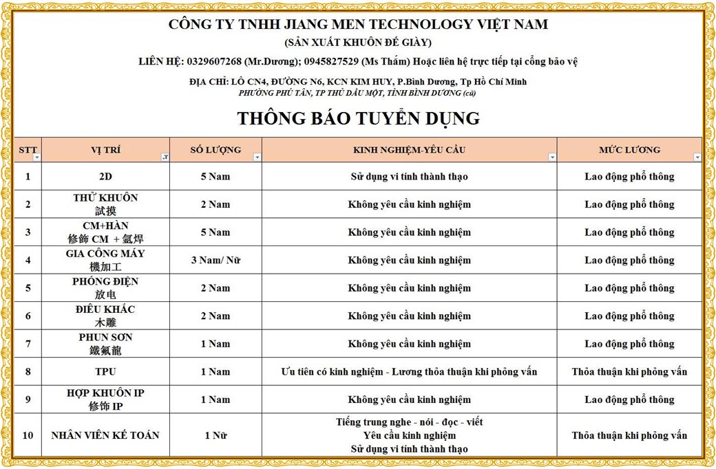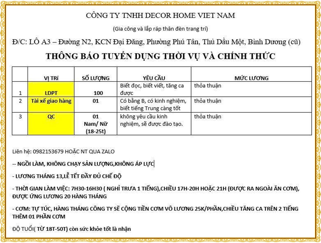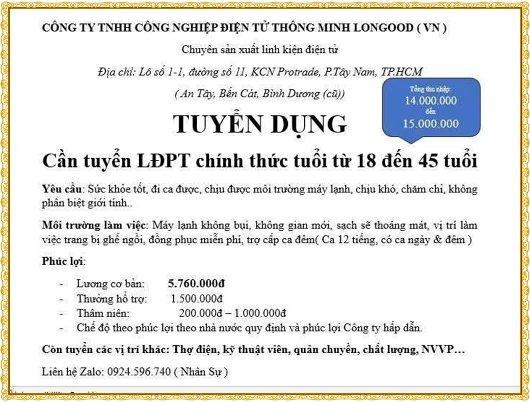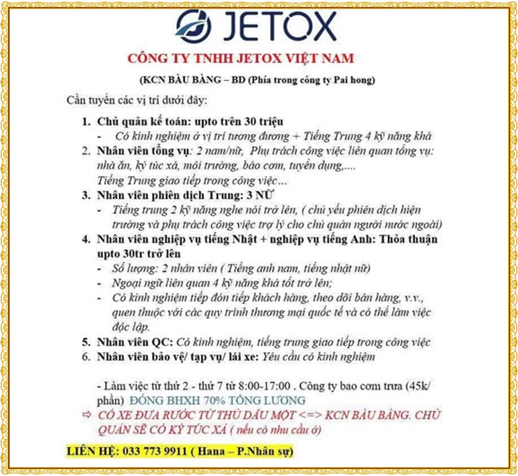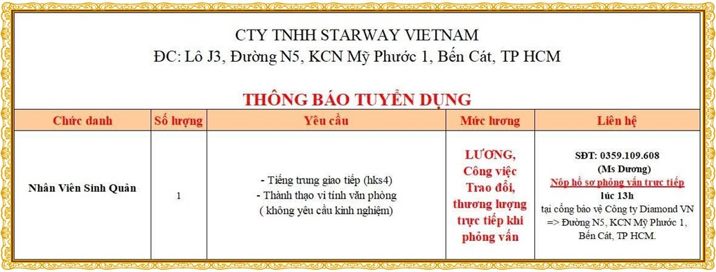 Note: THẬN TRỌNG KHI CÓ BẤT KỲ YÊU CẦU THU PHÍ TỪ PHÍA NHÀ TUYỂN DỤNG !
