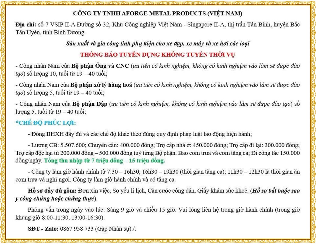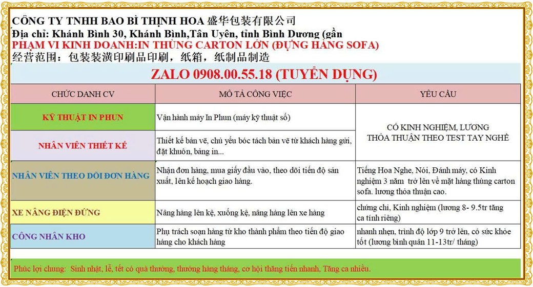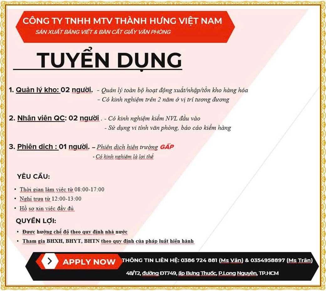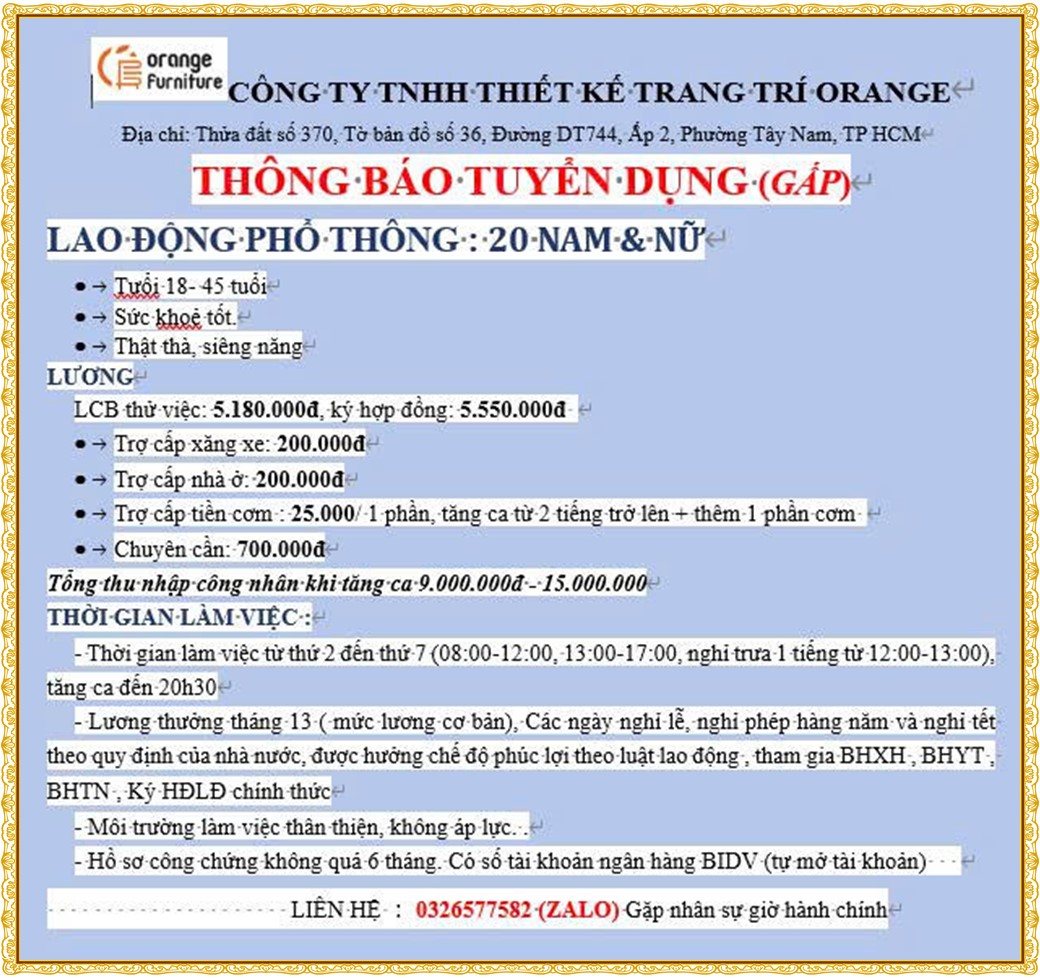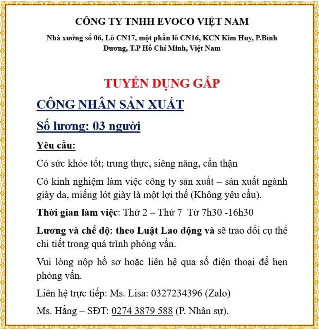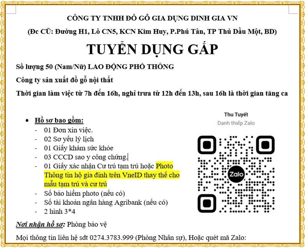 Note: THẬN TRỌNG KHI CÓ BẤT KỲ YÊU CẦU THU PHÍ TỪ PHÍA NHÀ TUYỂN DỤNG !
