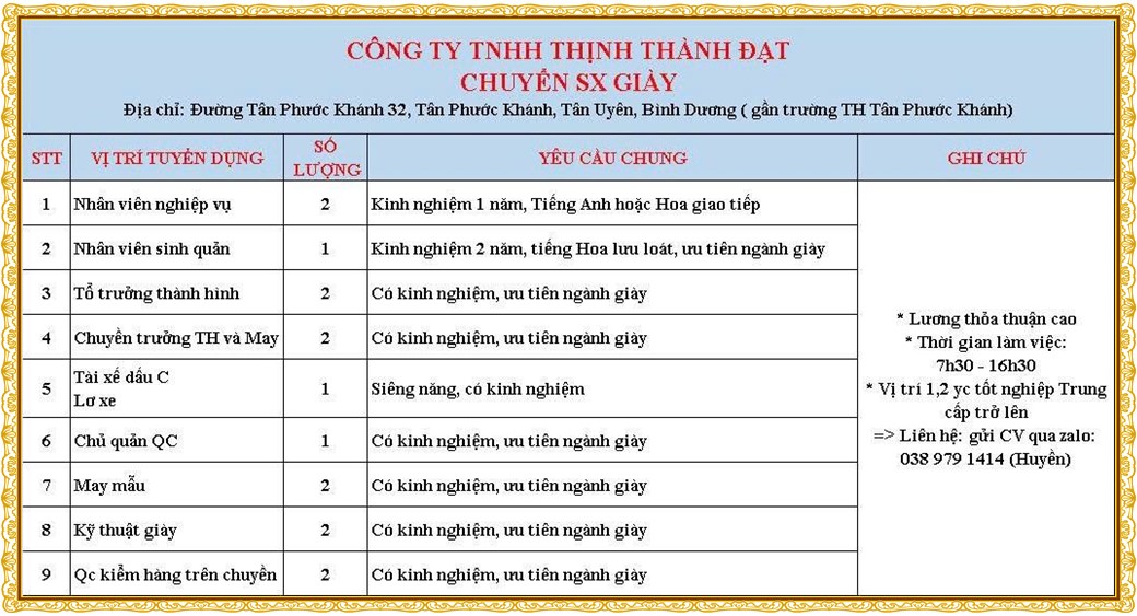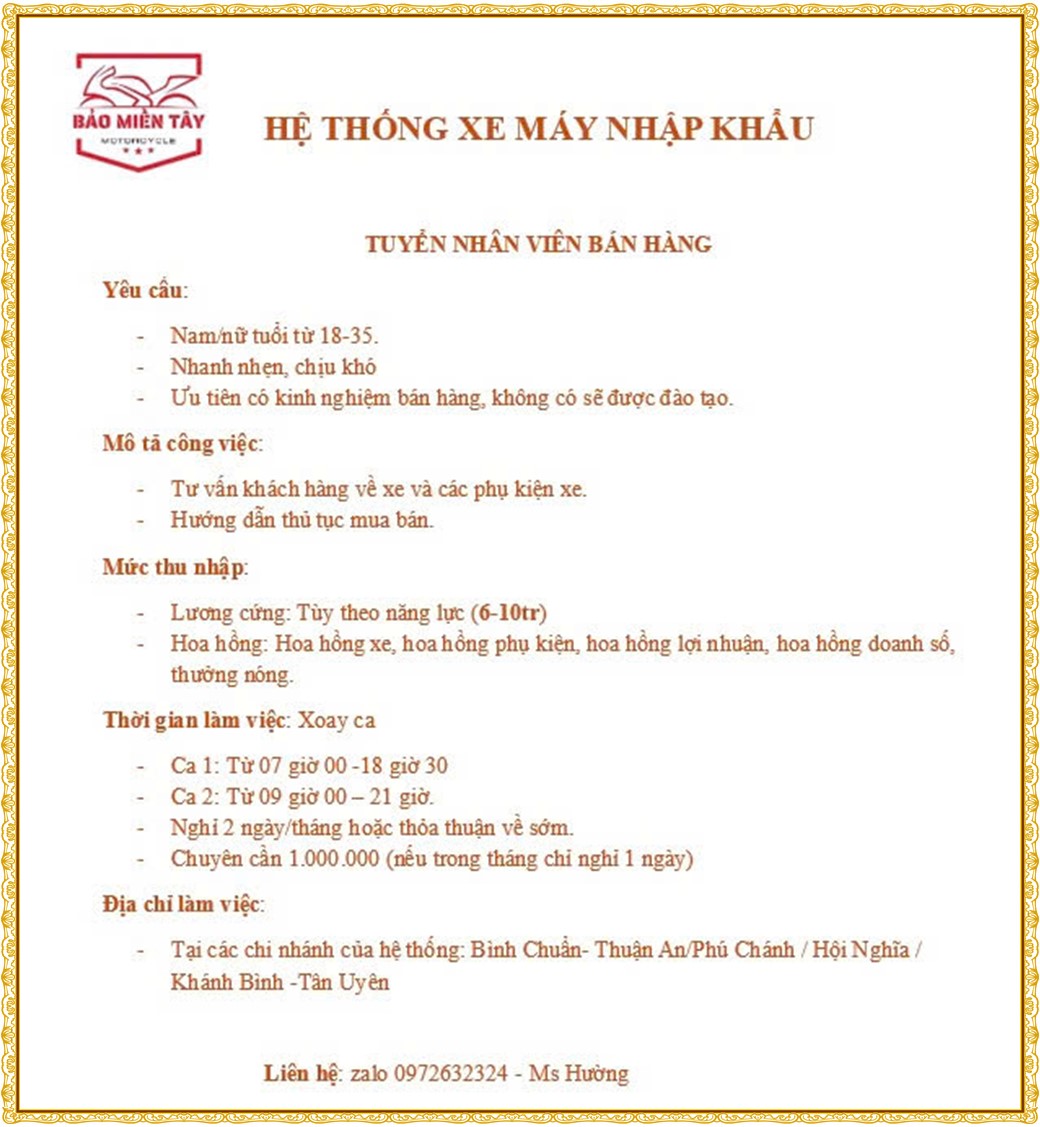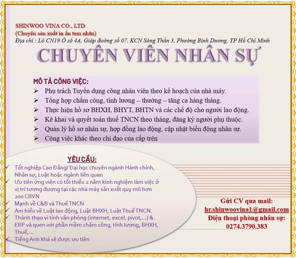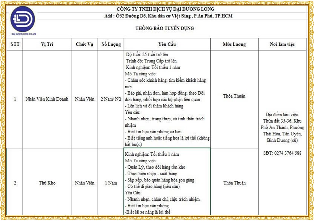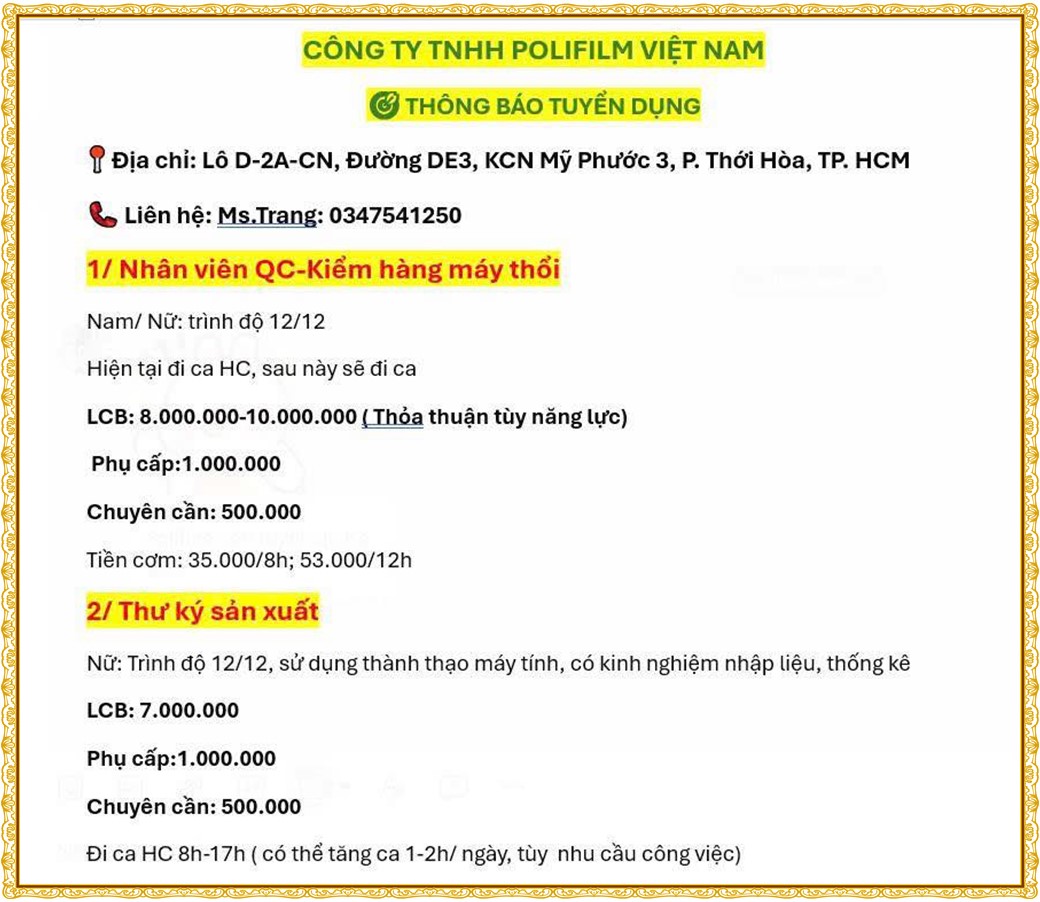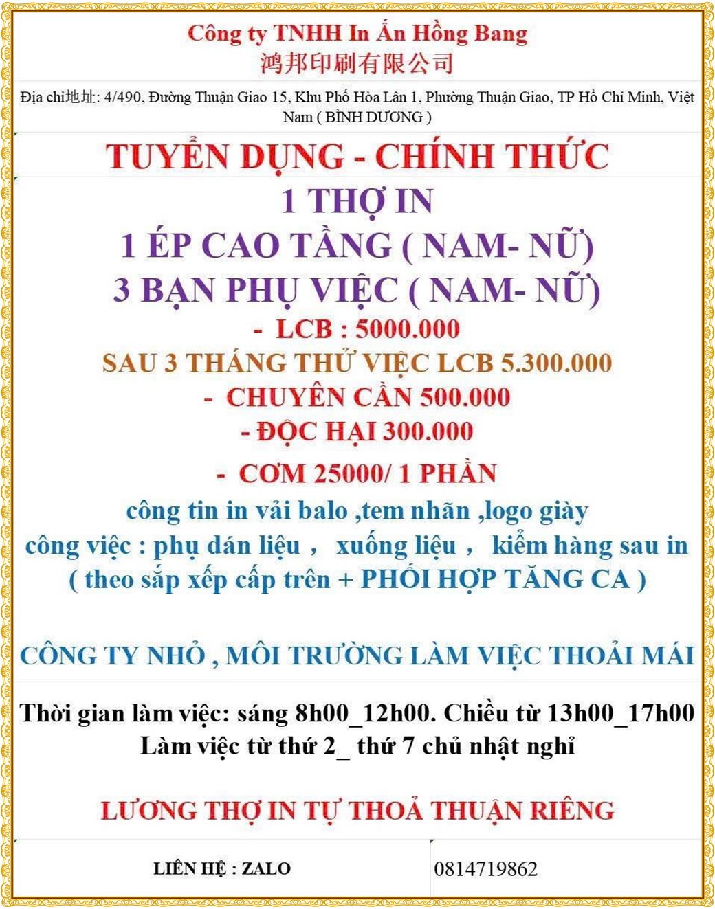Note: THẬN TRỌNG KHI CÓ BẤT KỲ YÊU CẦU THU PHÍ TỪ PHÍA NHÀ TUYỂN DỤNG !