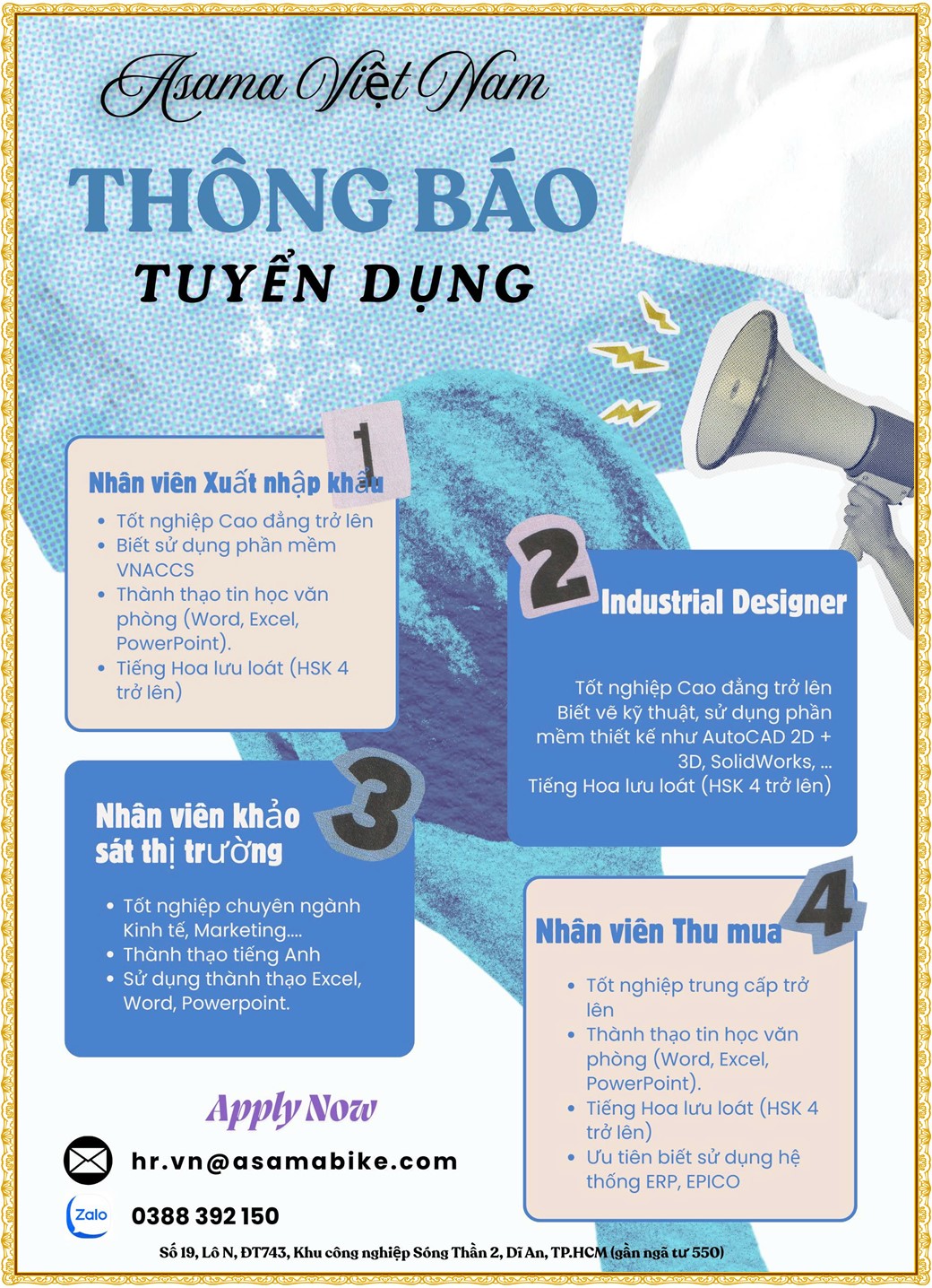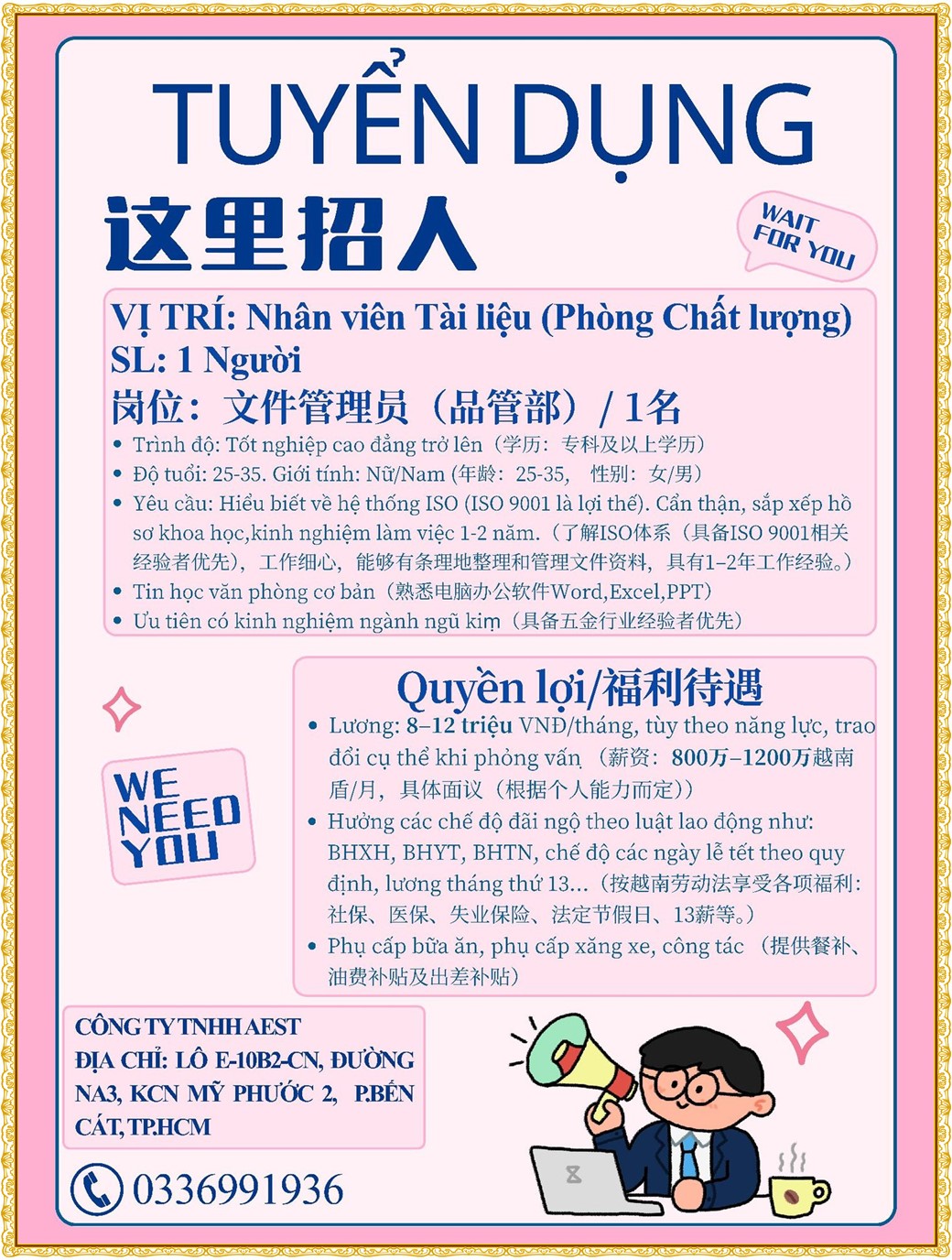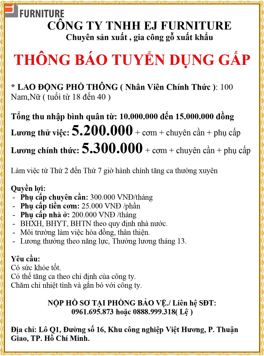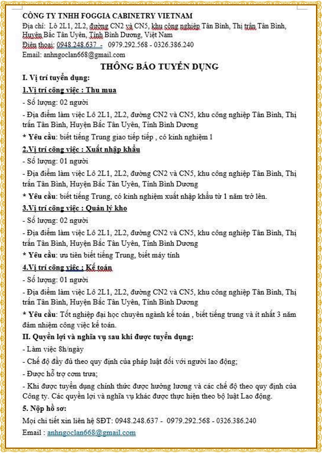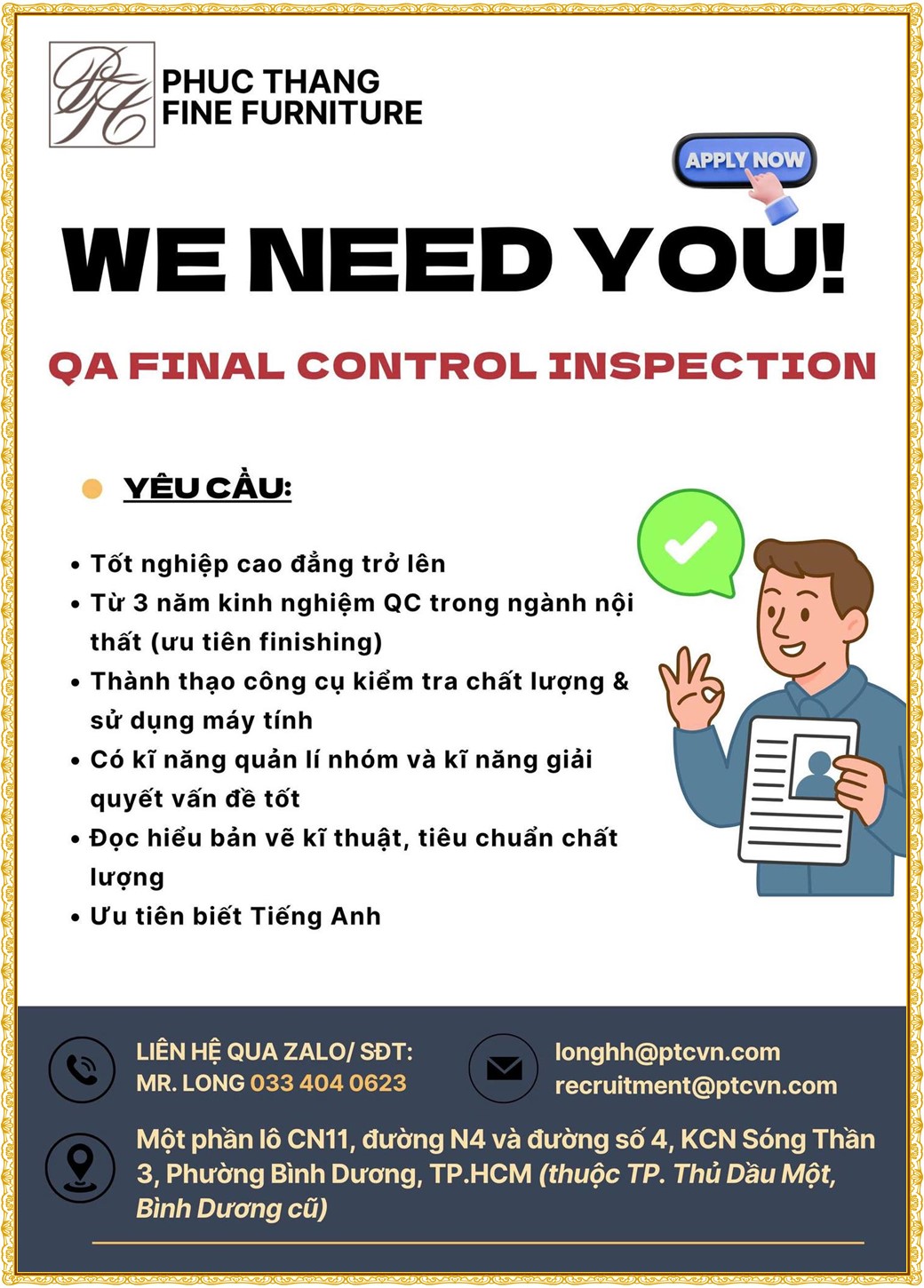 Note: THẬN TRỌNG KHI CÓ BẤT KỲ YÊU CẦU THU PHÍ TỪ PHÍA NHÀ TUYỂN DỤNG !