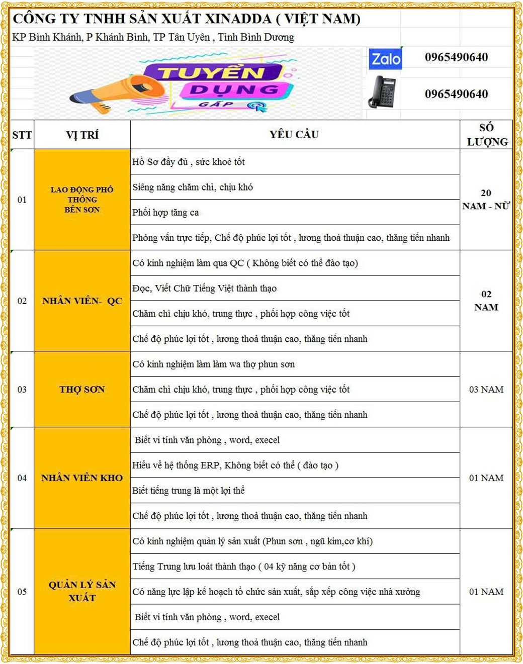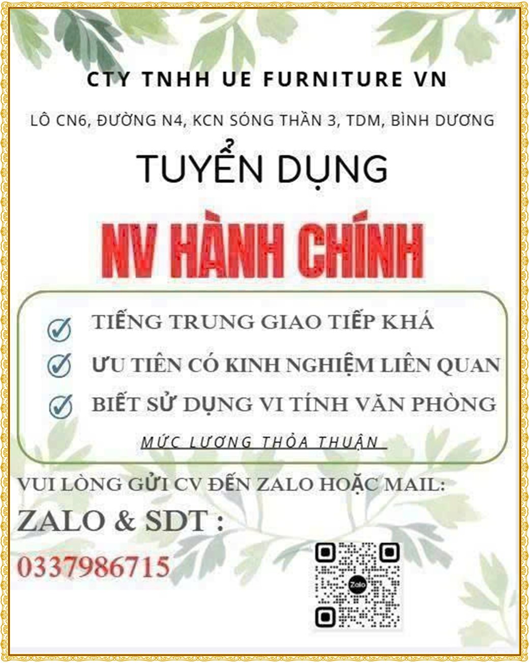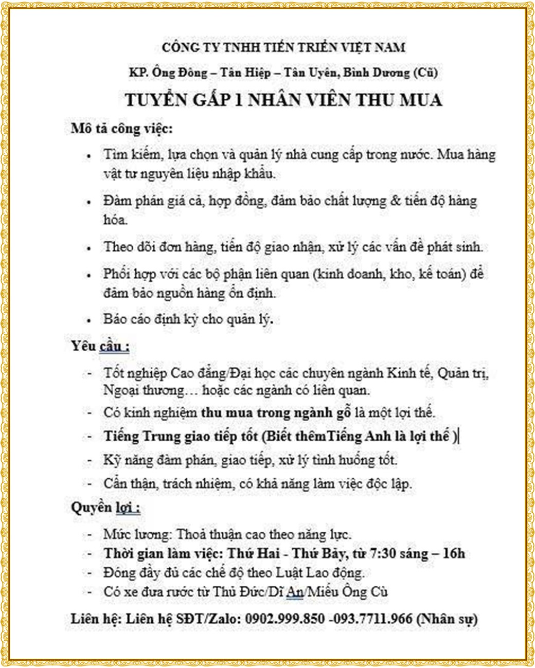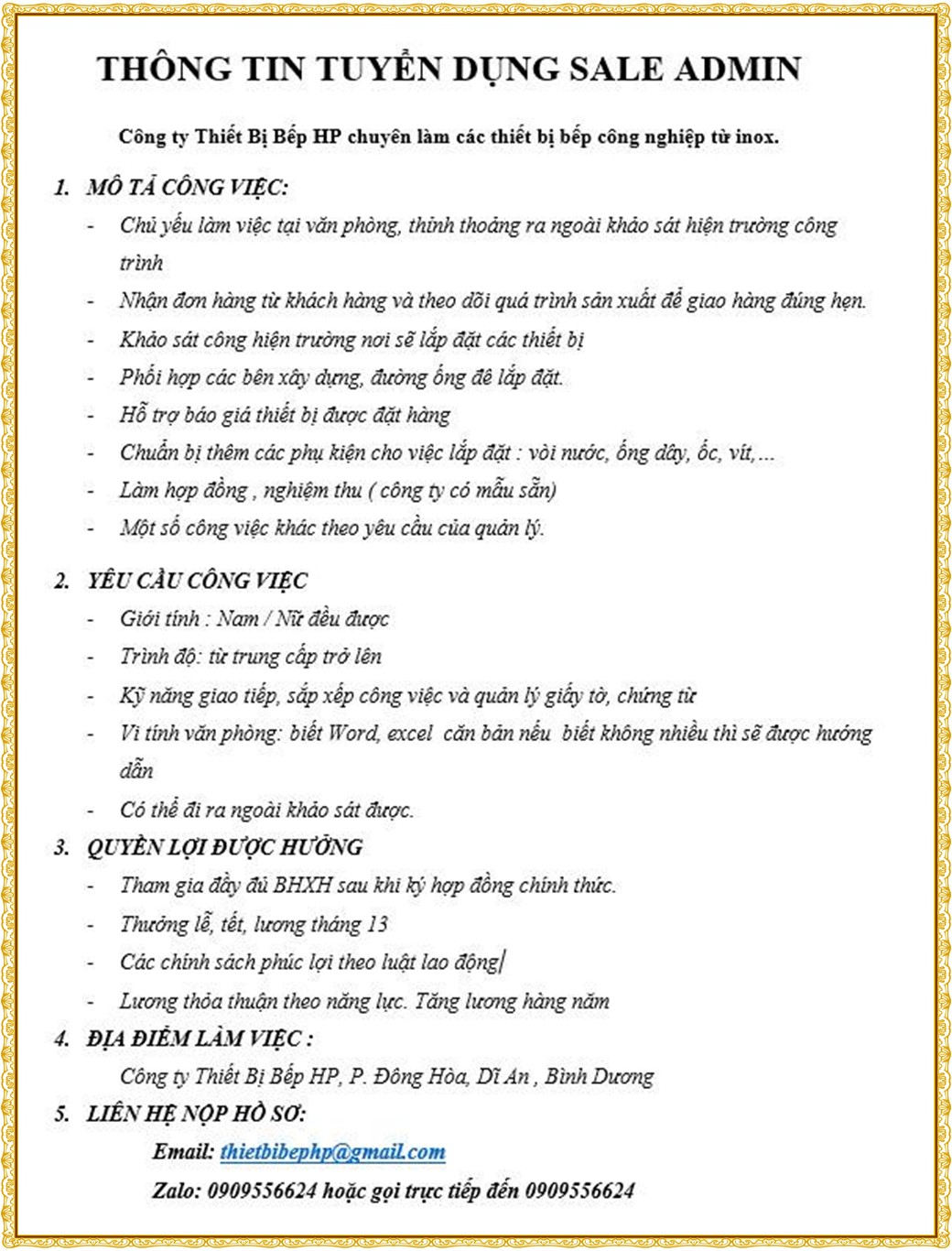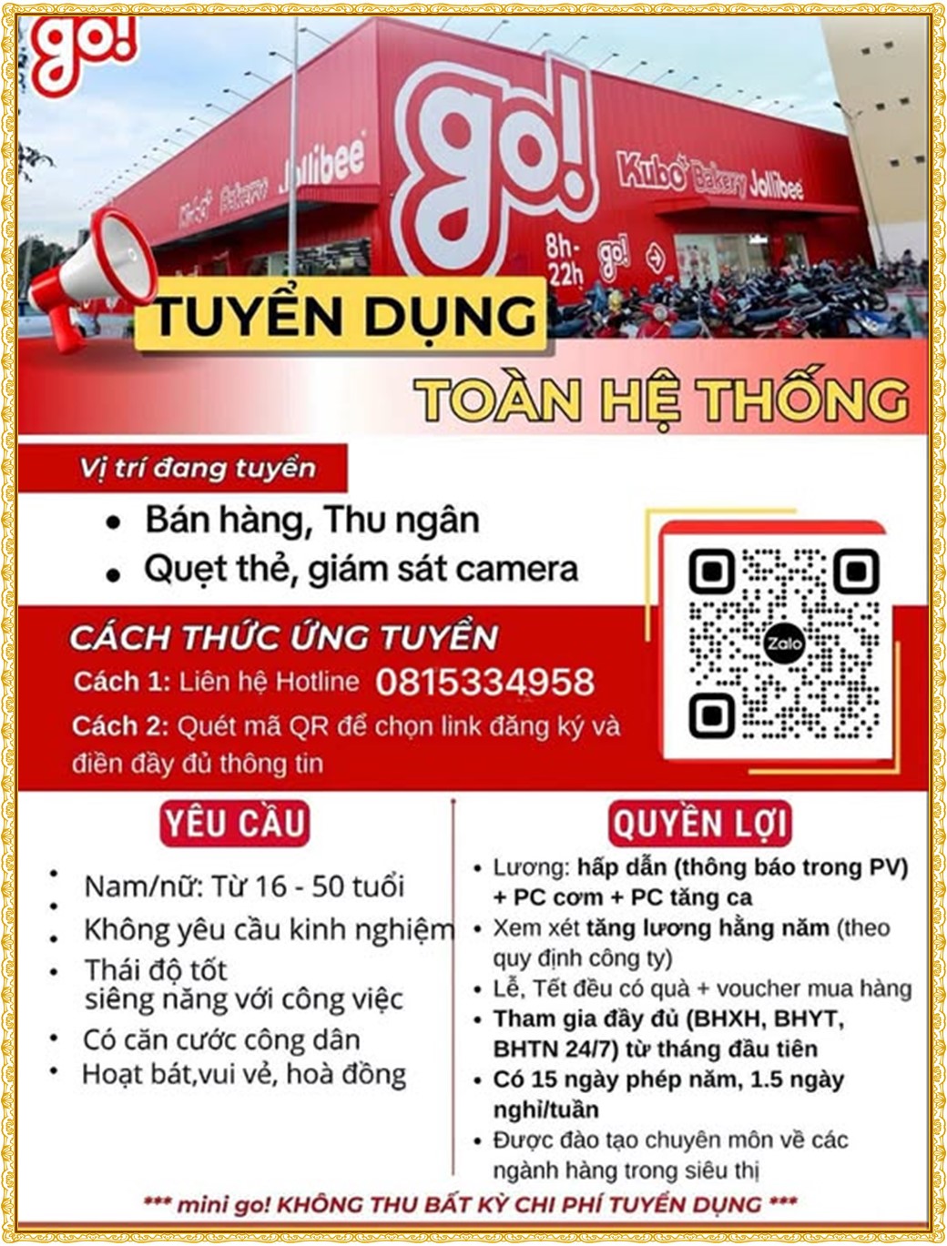 Note: THẬN TRỌNG KHI CÓ BẤT KỲ YÊU CẦU THU PHÍ TỪ PHÍA NHÀ TUYỂN DỤNG !