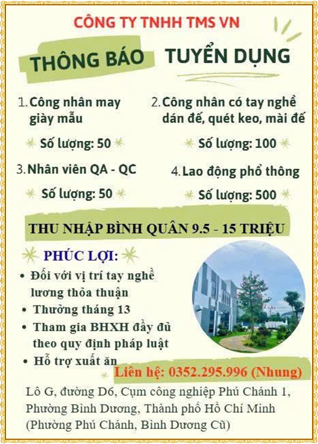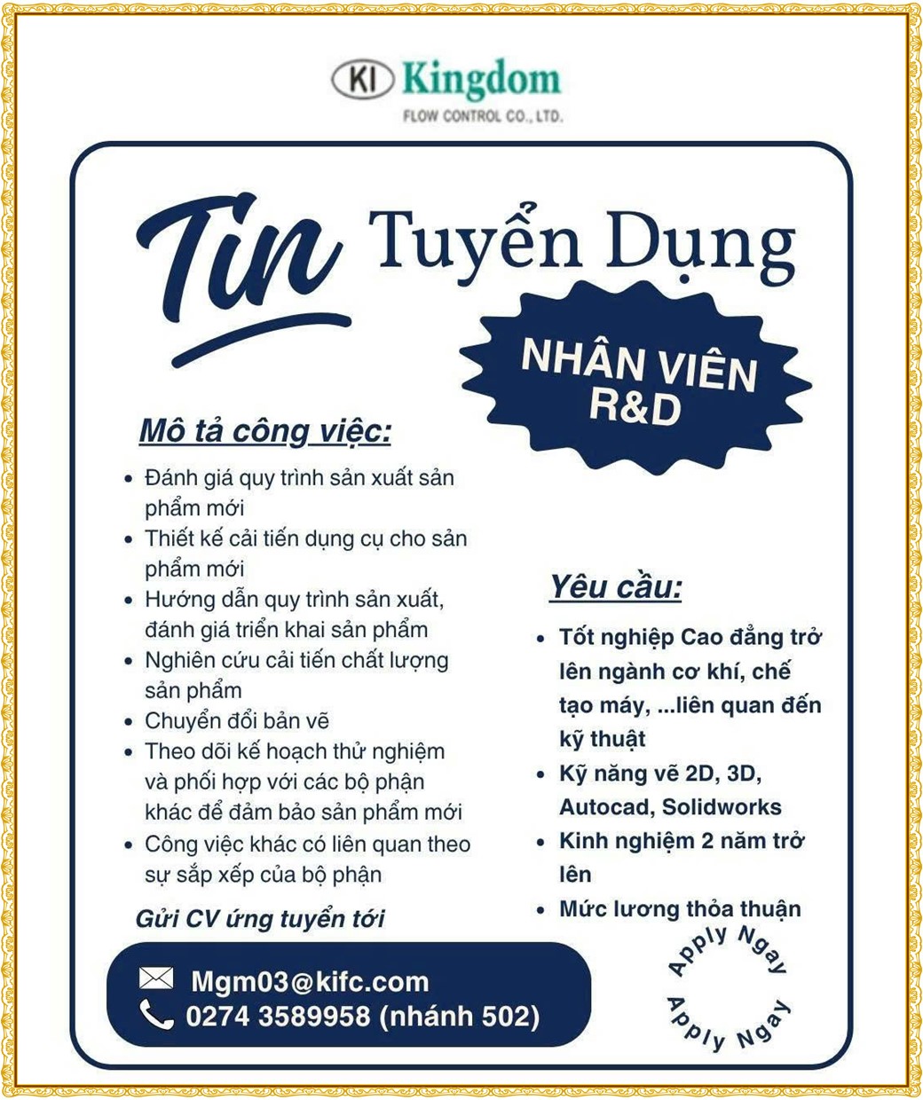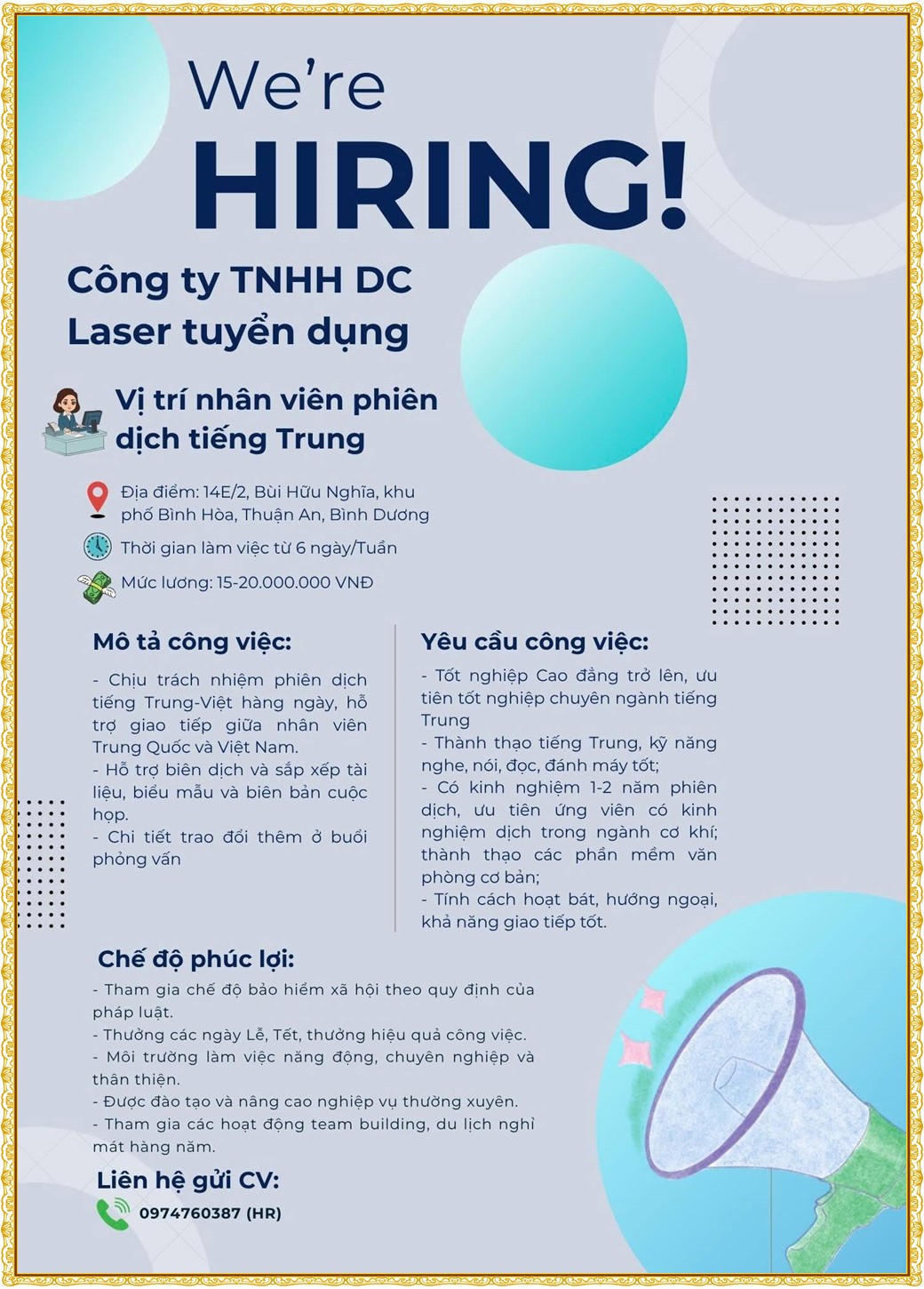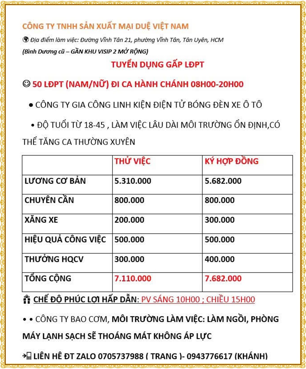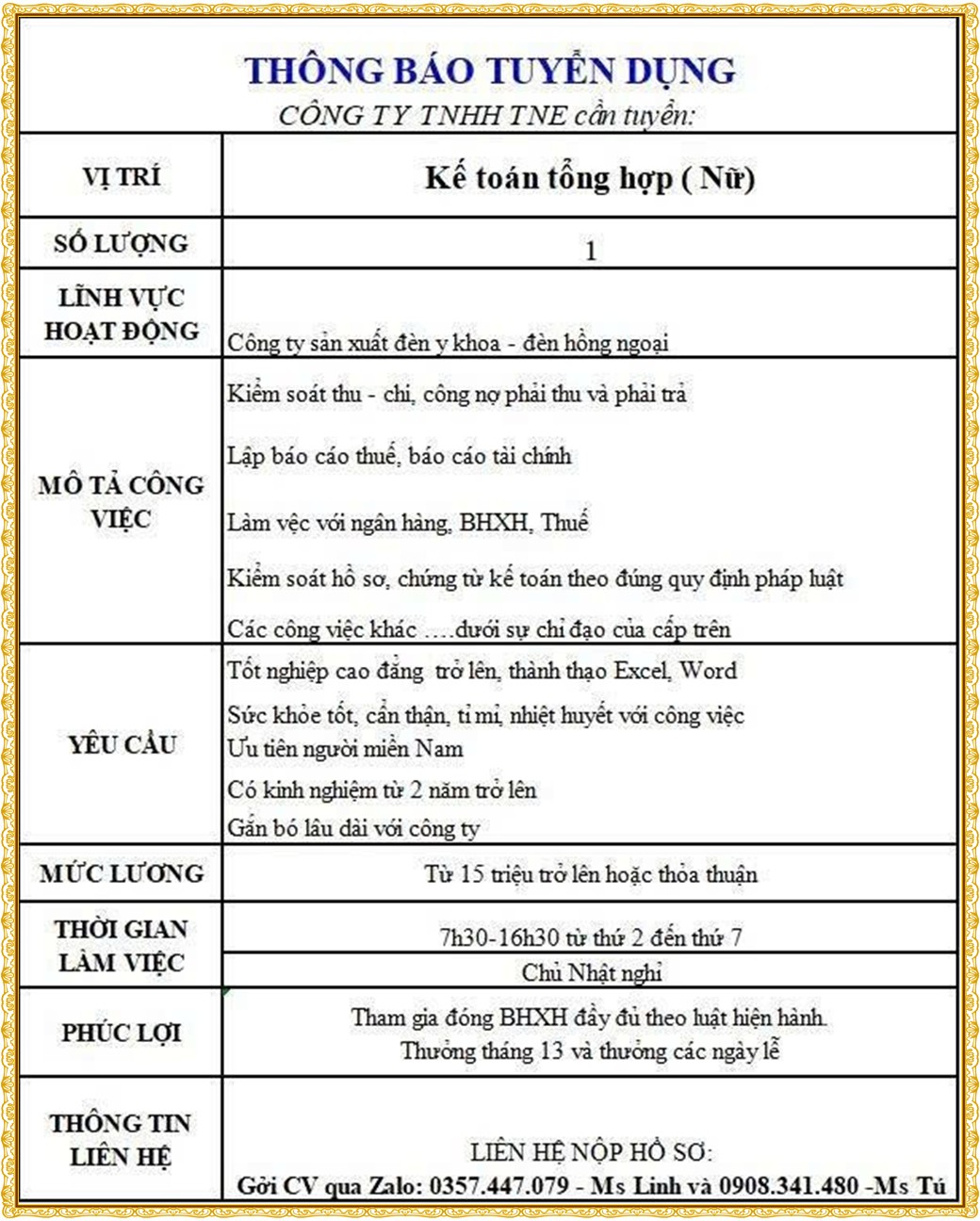 Note: THẬN TRỌNG KHI CÓ BẤT KỲ YÊU CẦU THU PHÍ TỪ PHÍA NHÀ TUYỂN DỤNG !