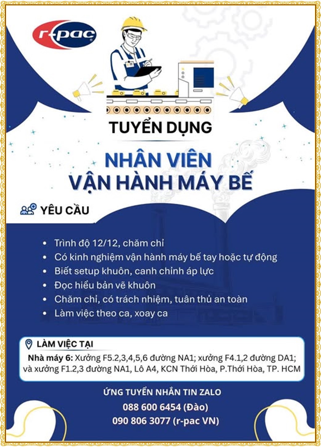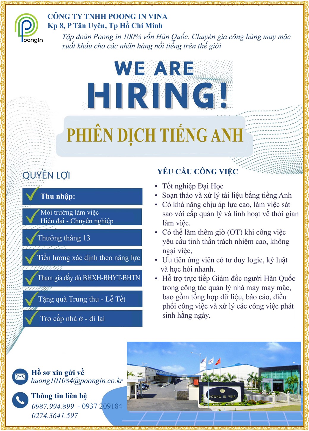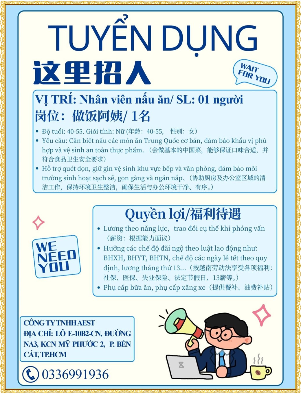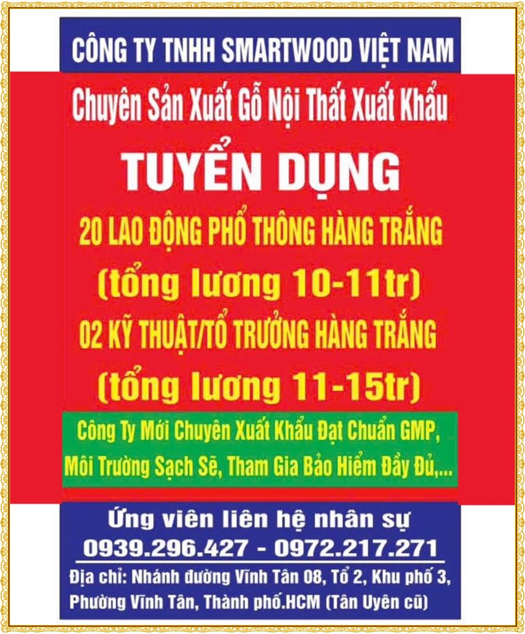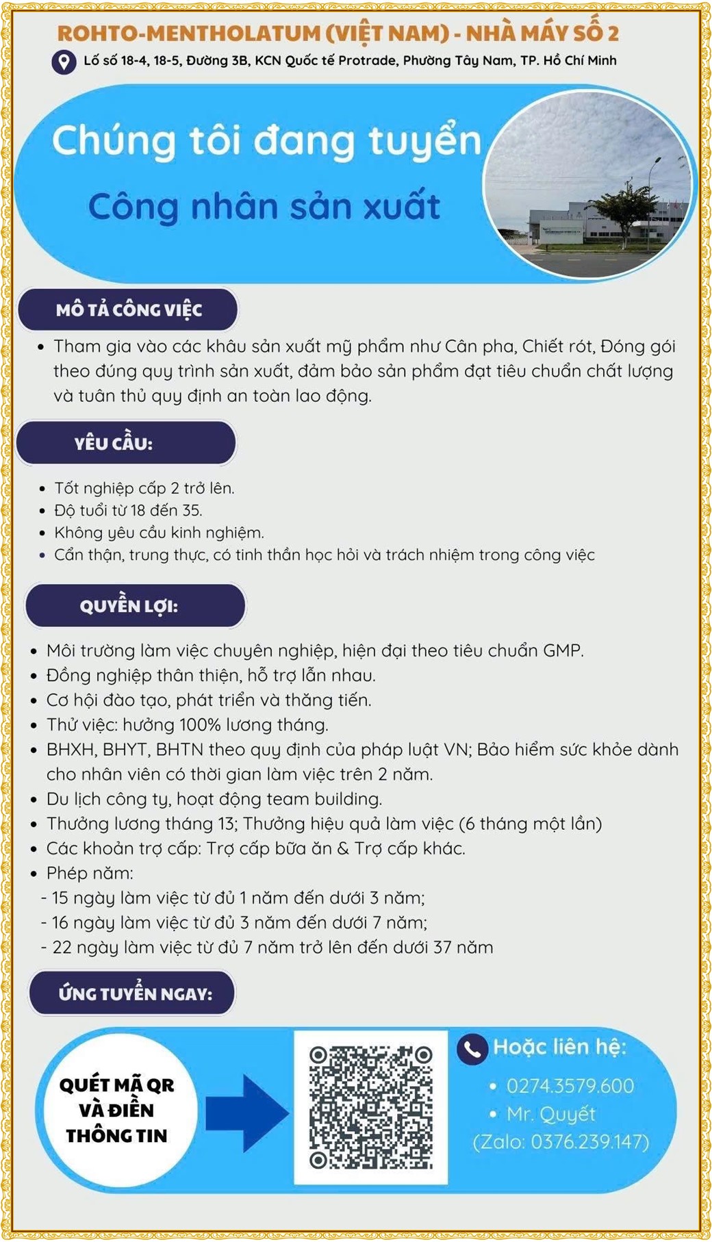 Note: THẬN TRỌNG KHI CÓ BẤT KỲ YÊU CẦU THU PHÍ TỪ PHÍA NHÀ TUYỂN DỤNG !