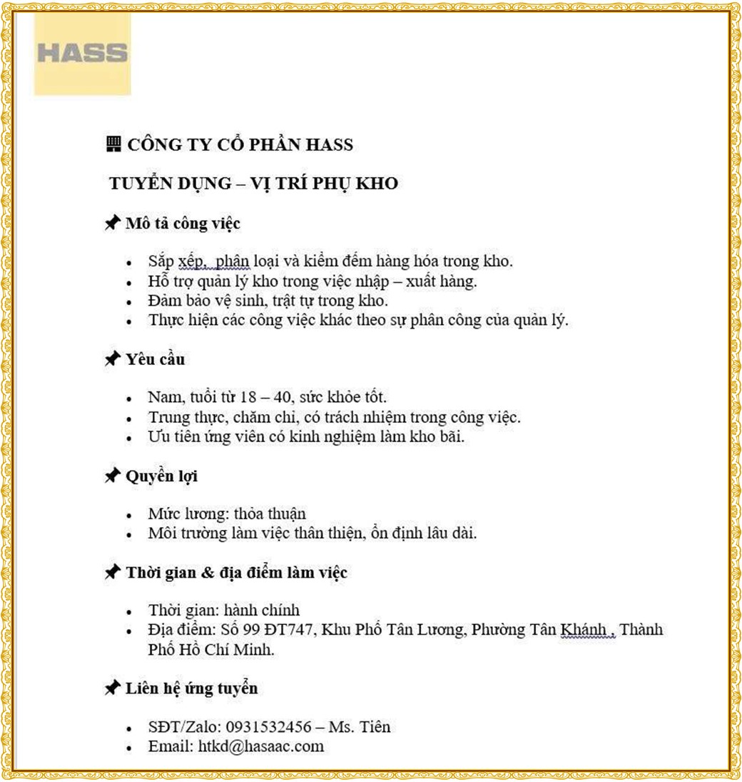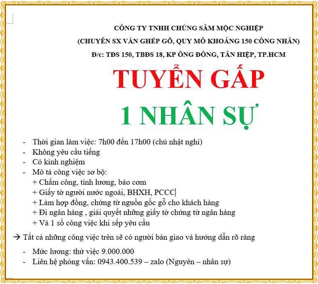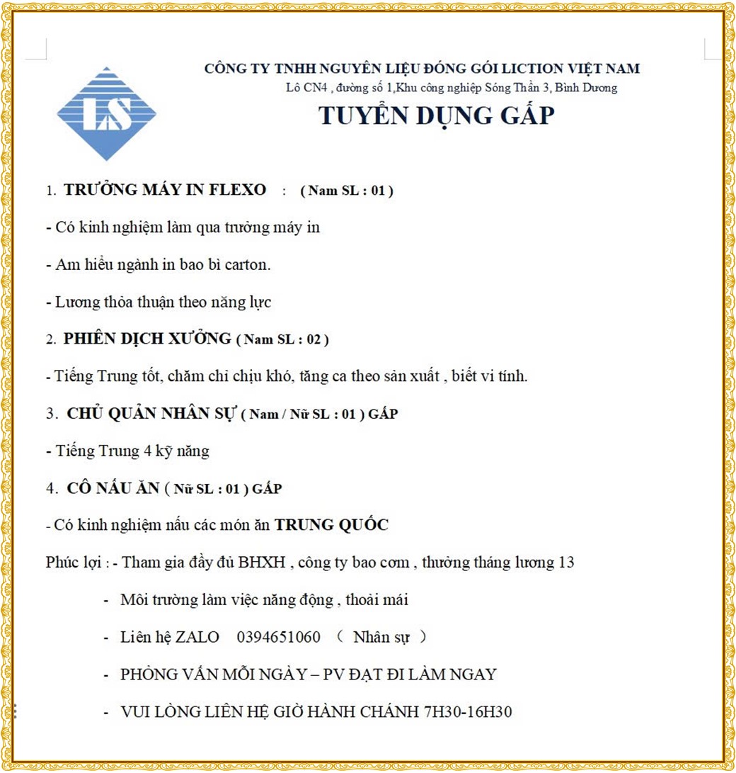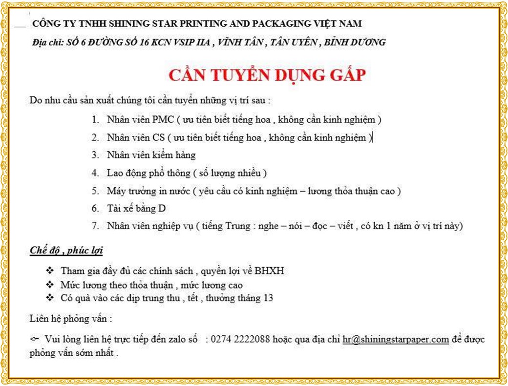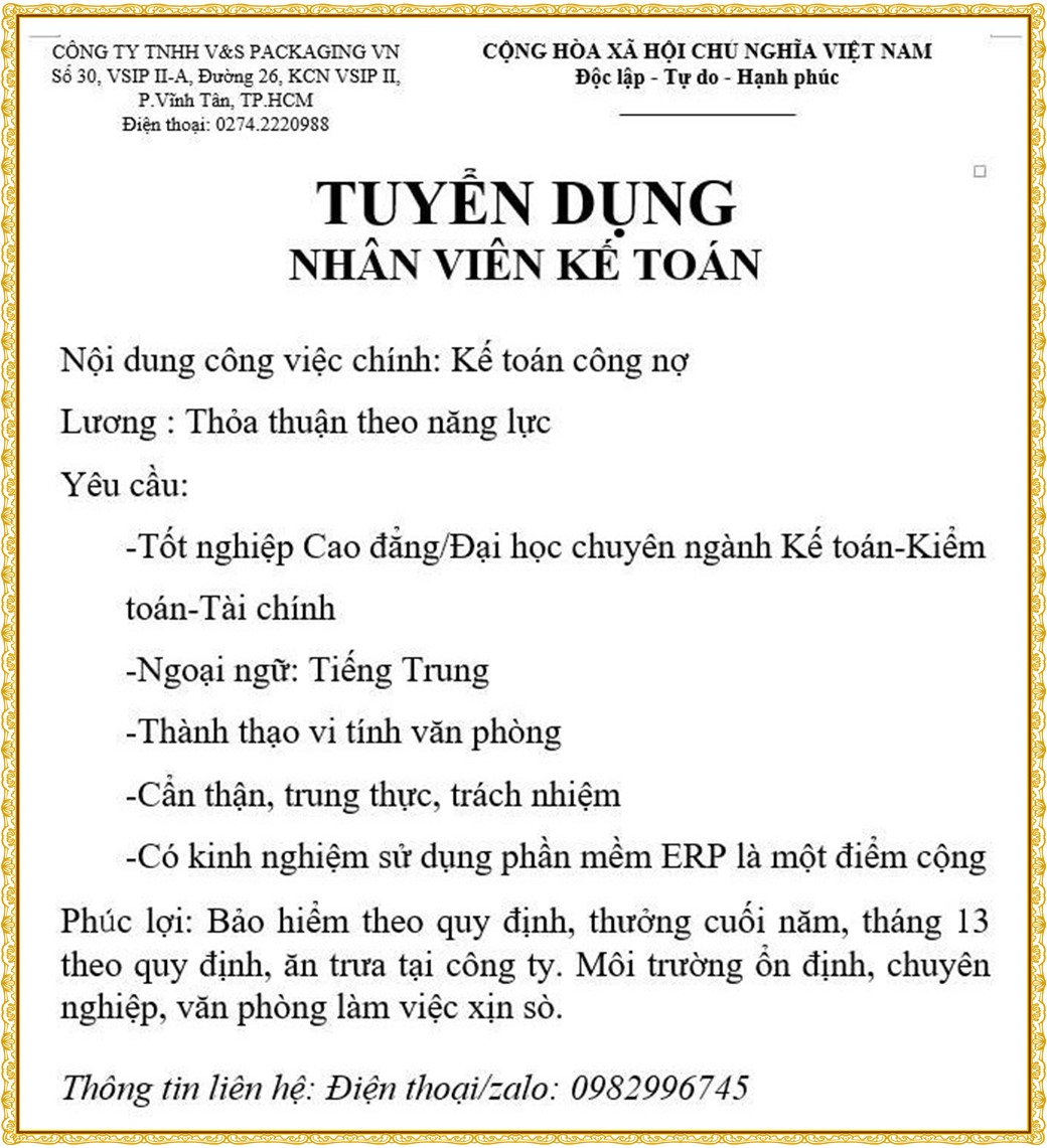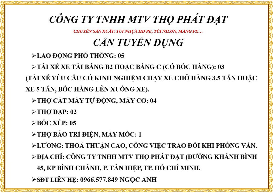 * PHẦN TIẾP THEO : TIN TUYỂN DỤNG >>>