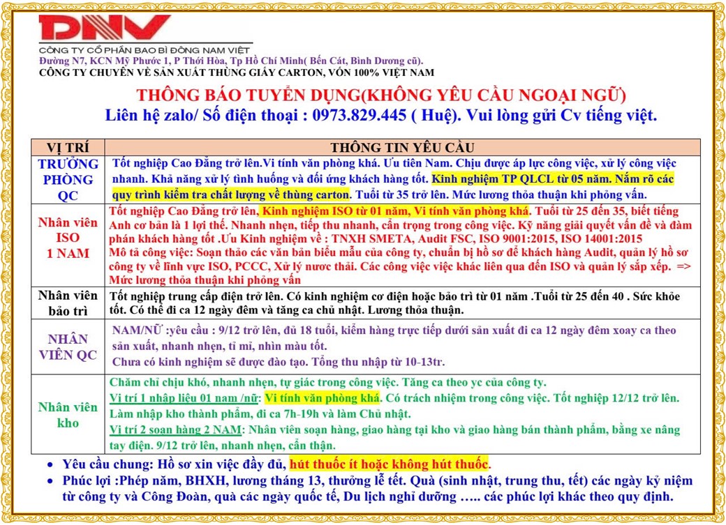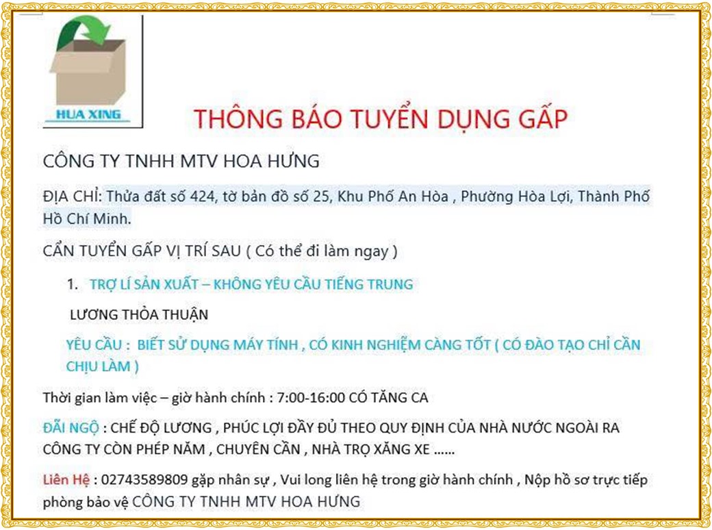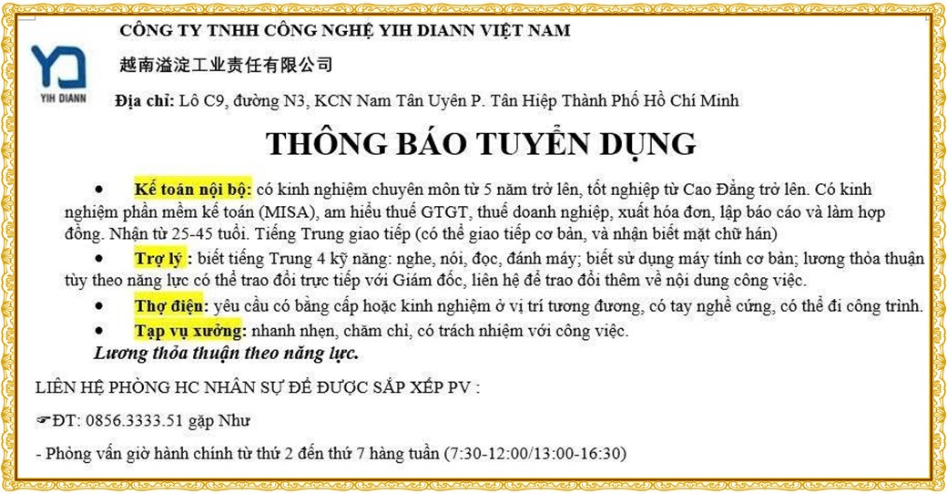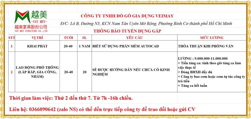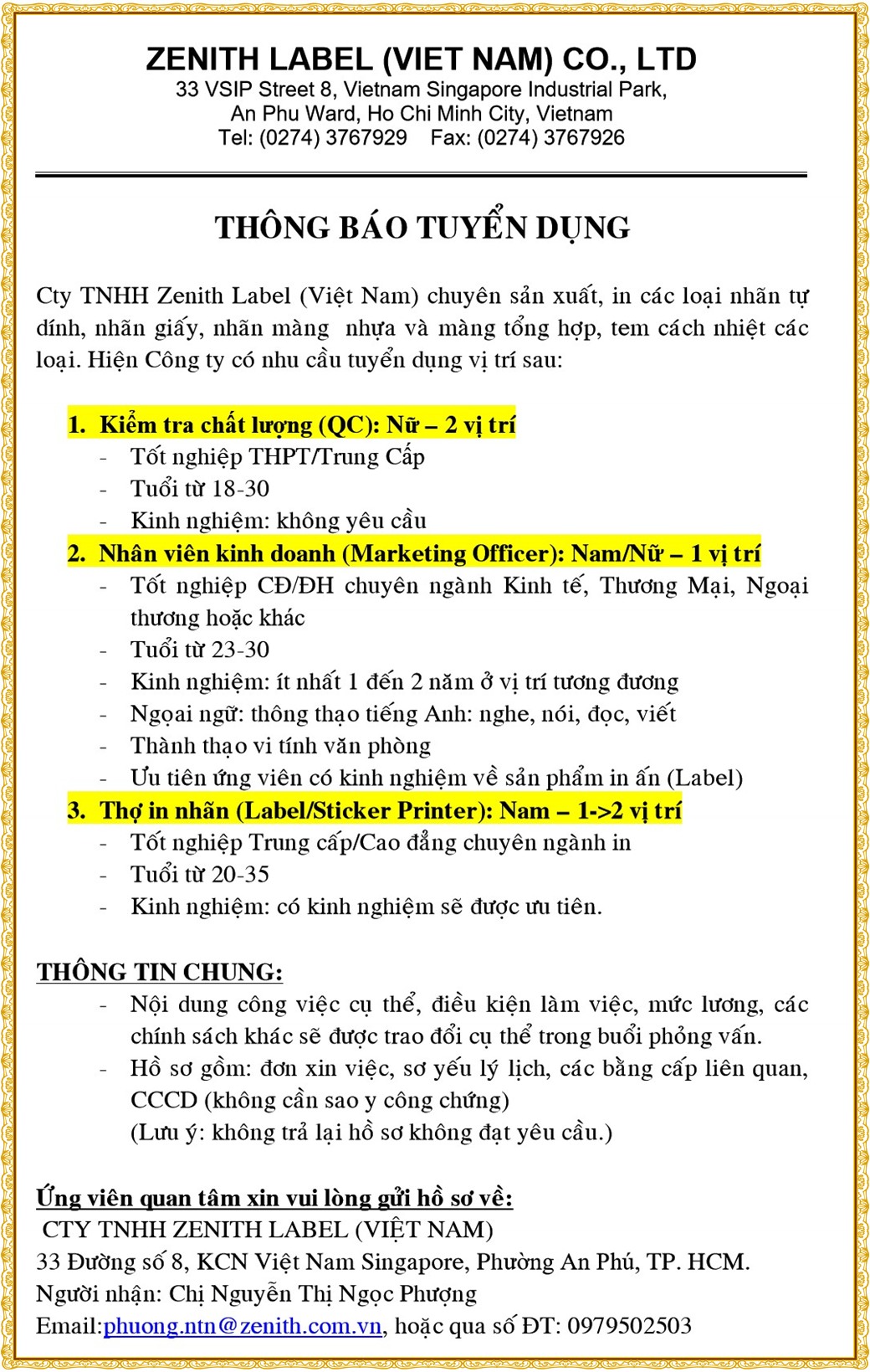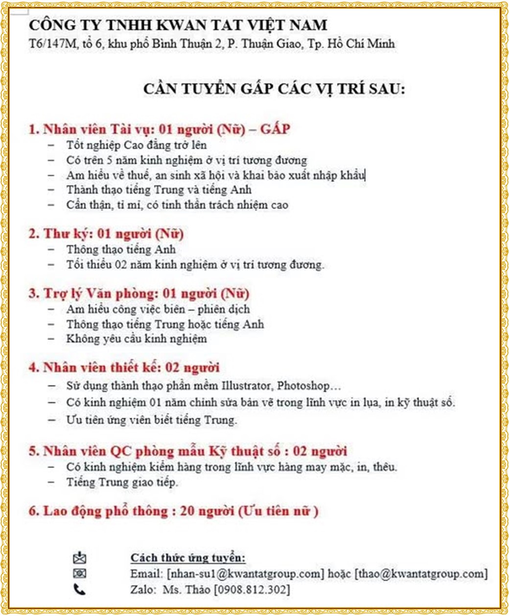 Note: THẬN TRỌNG KHI CÓ BẤT KỲ YÊU CẦU THU PHÍ TỪ PHÍA NHÀ TUYỂN DỤNG !