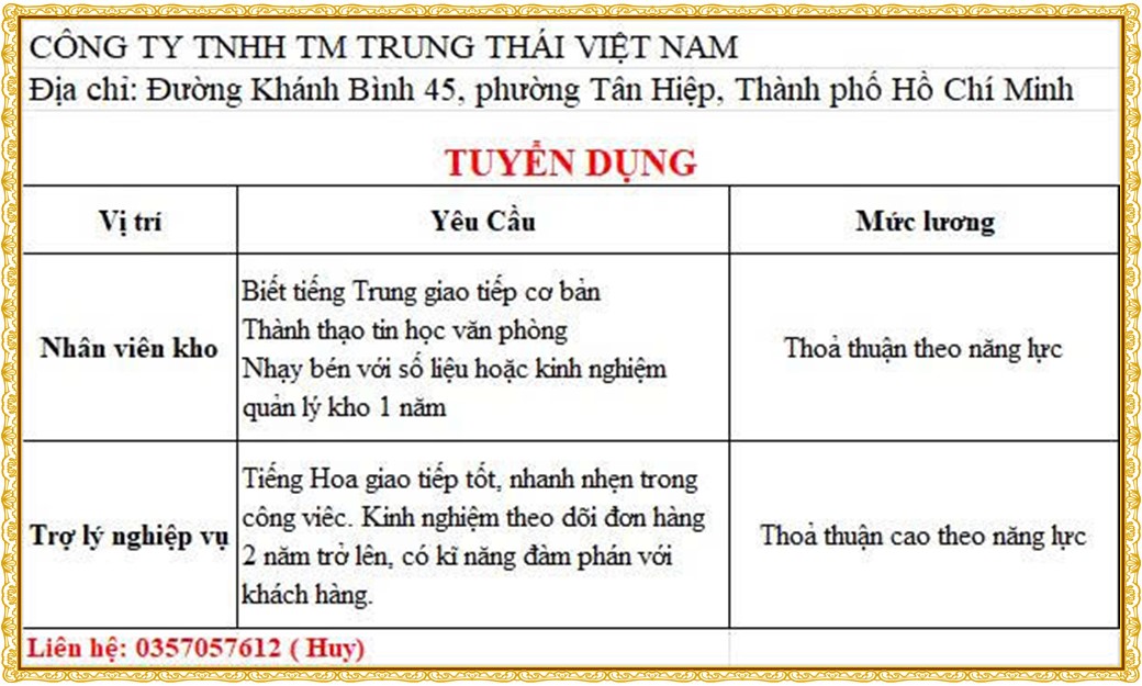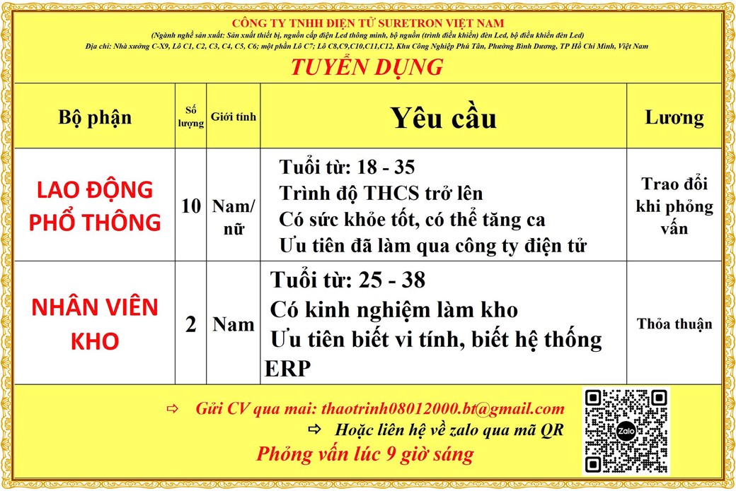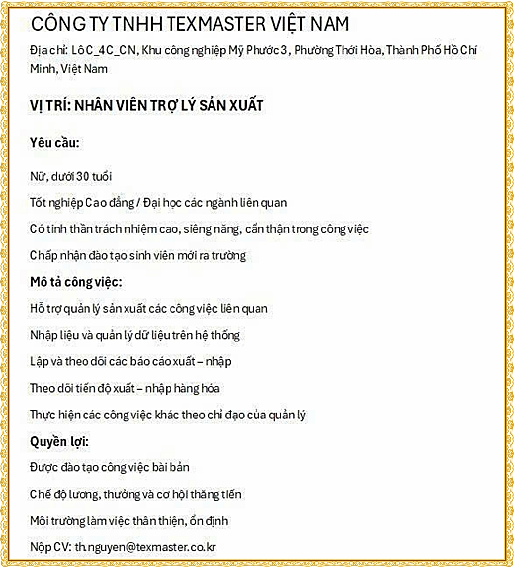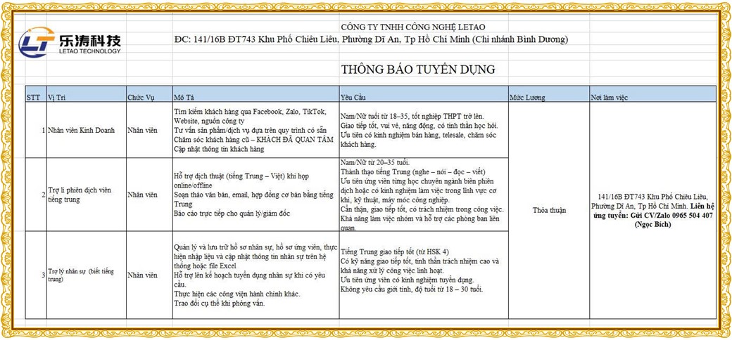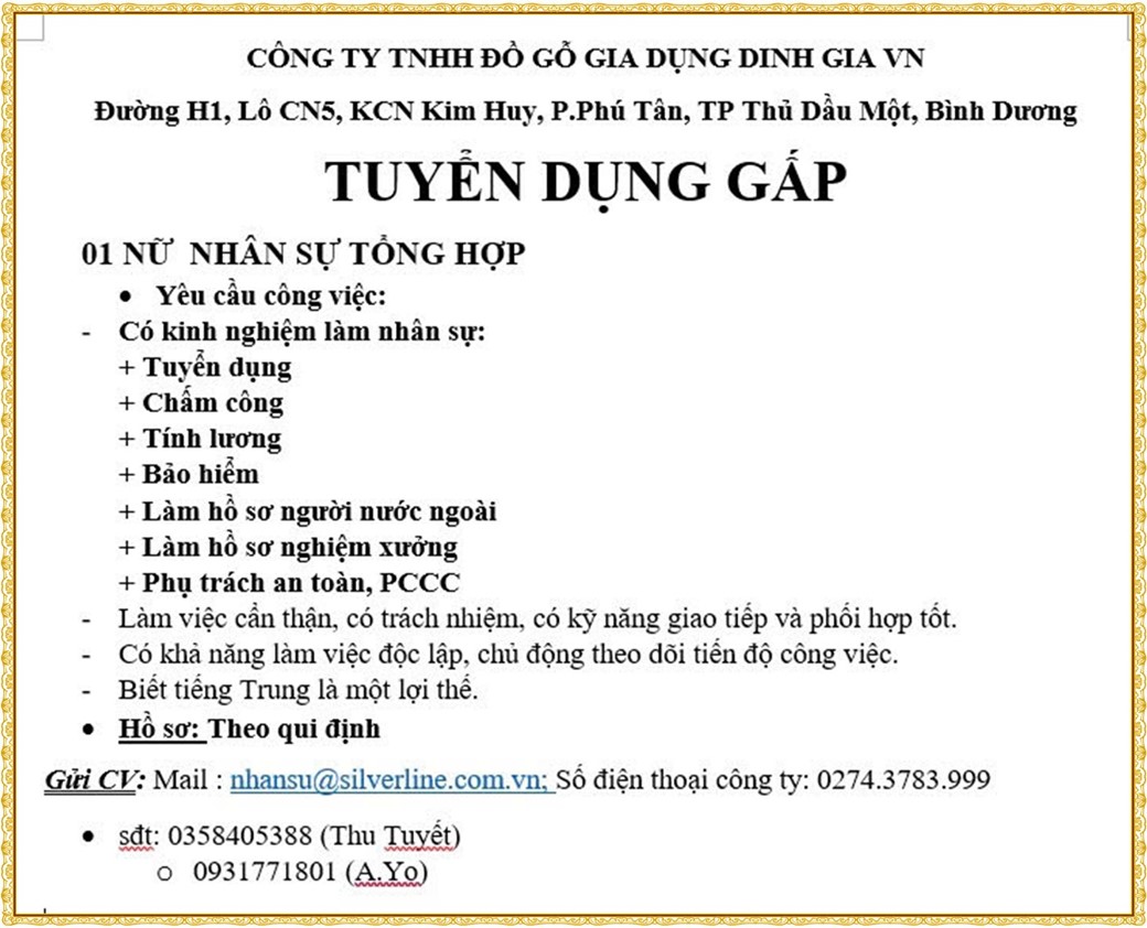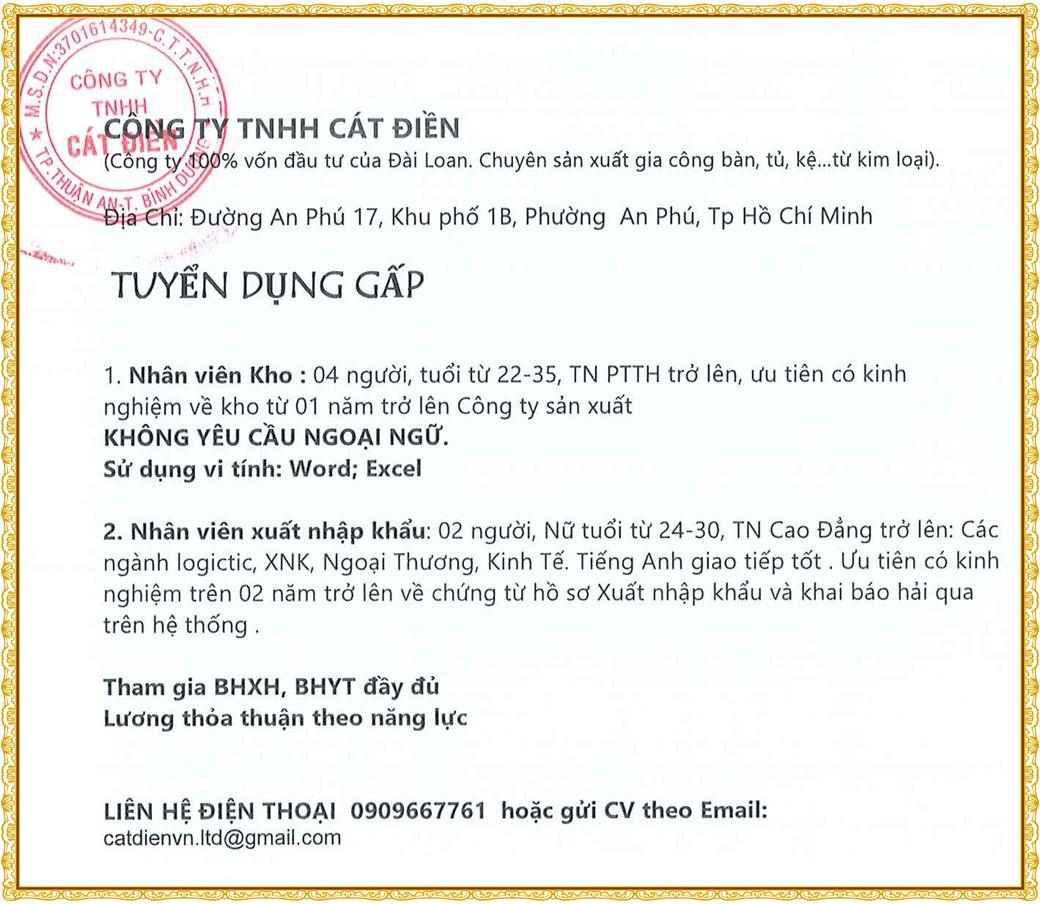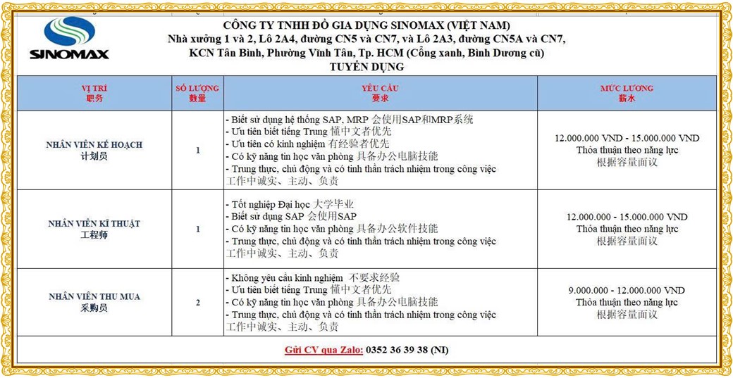 Note: THẬN TRỌNG KHI CÓ BẤT KỲ YÊU CẦU THU PHÍ TỪ PHÍA NHÀ TUYỂN DỤNG !