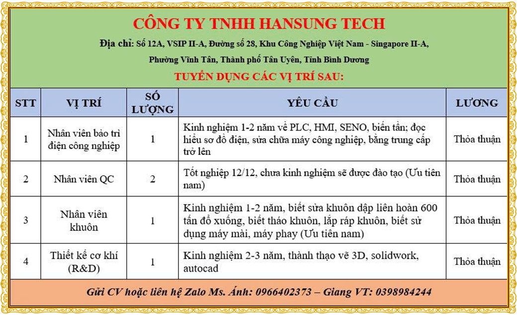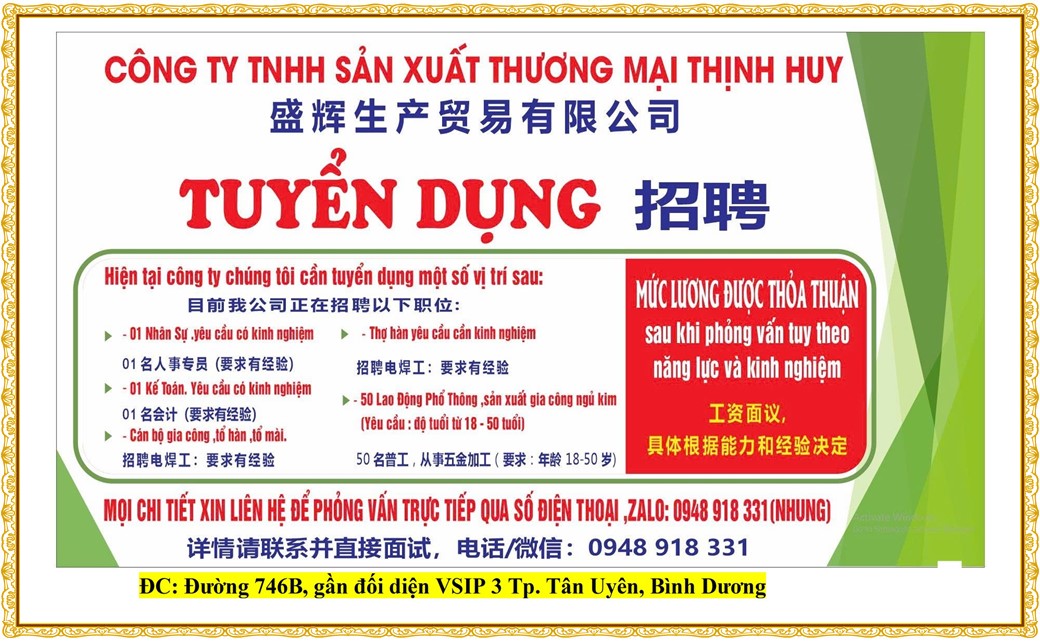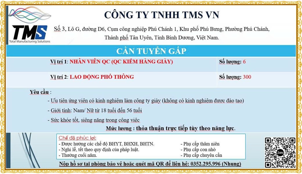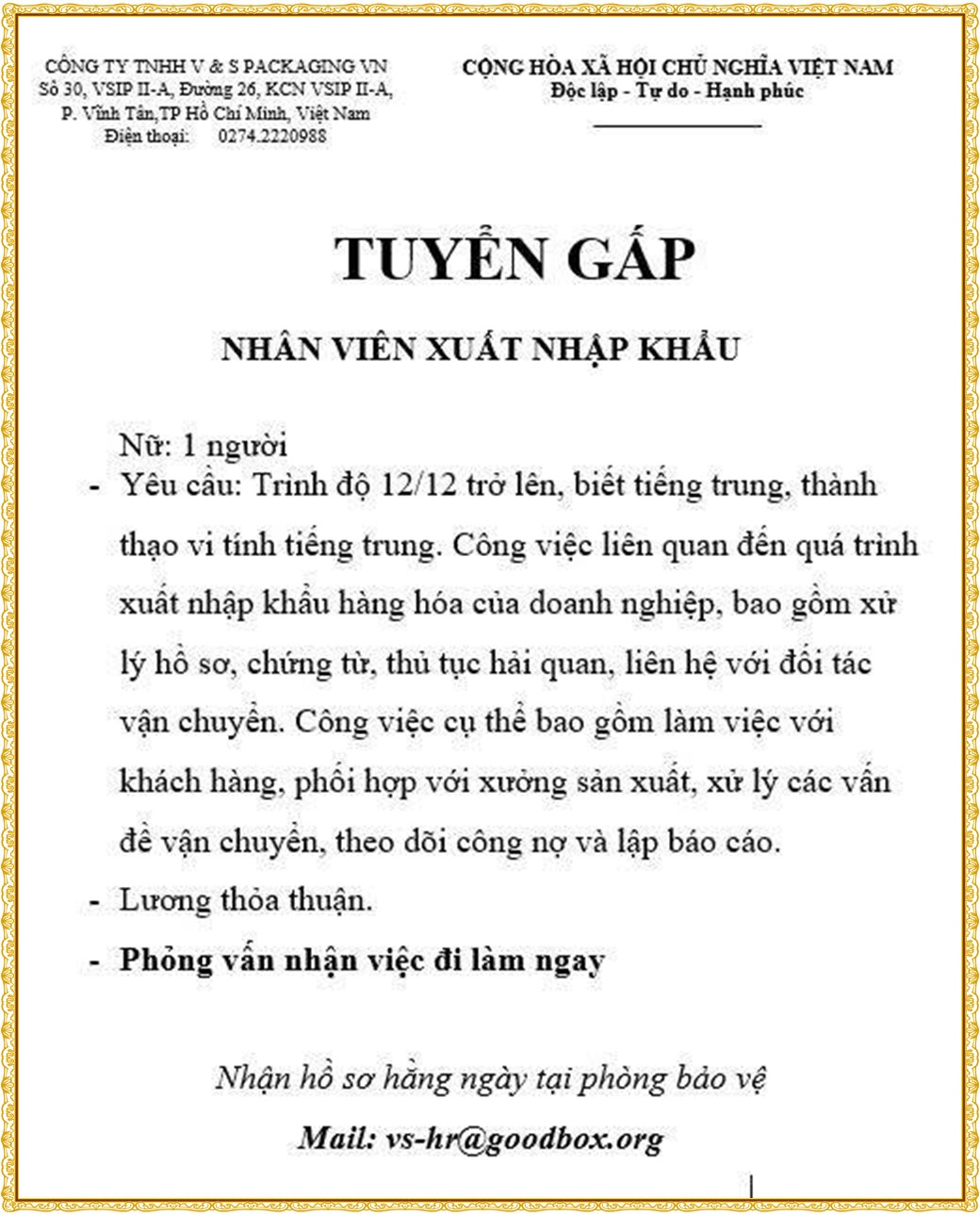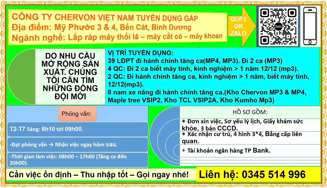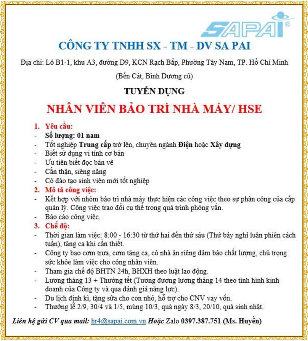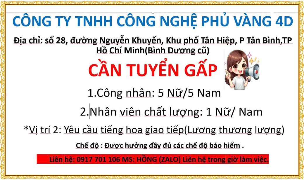 Note: THẬN TRỌNG KHI CÓ BẤT KỲ YÊU CẦU THU PHÍ TỪ PHÍA NHÀ TUYỂN DỤNG !