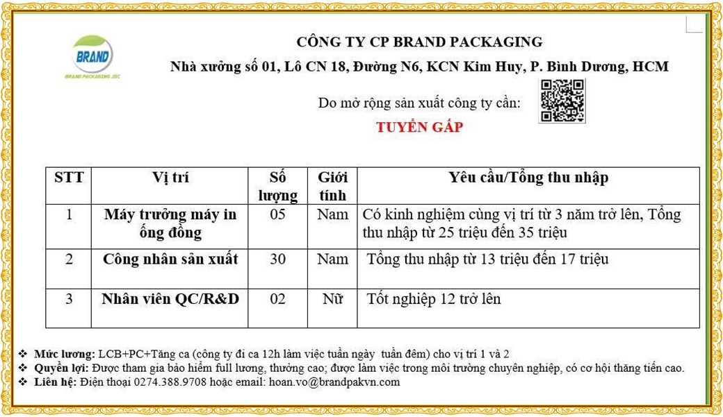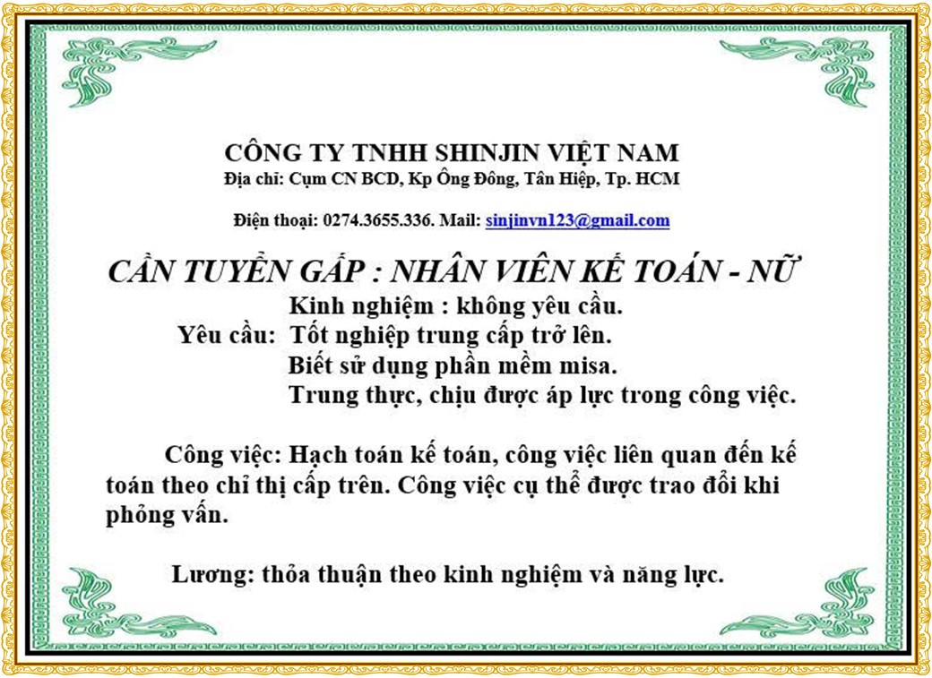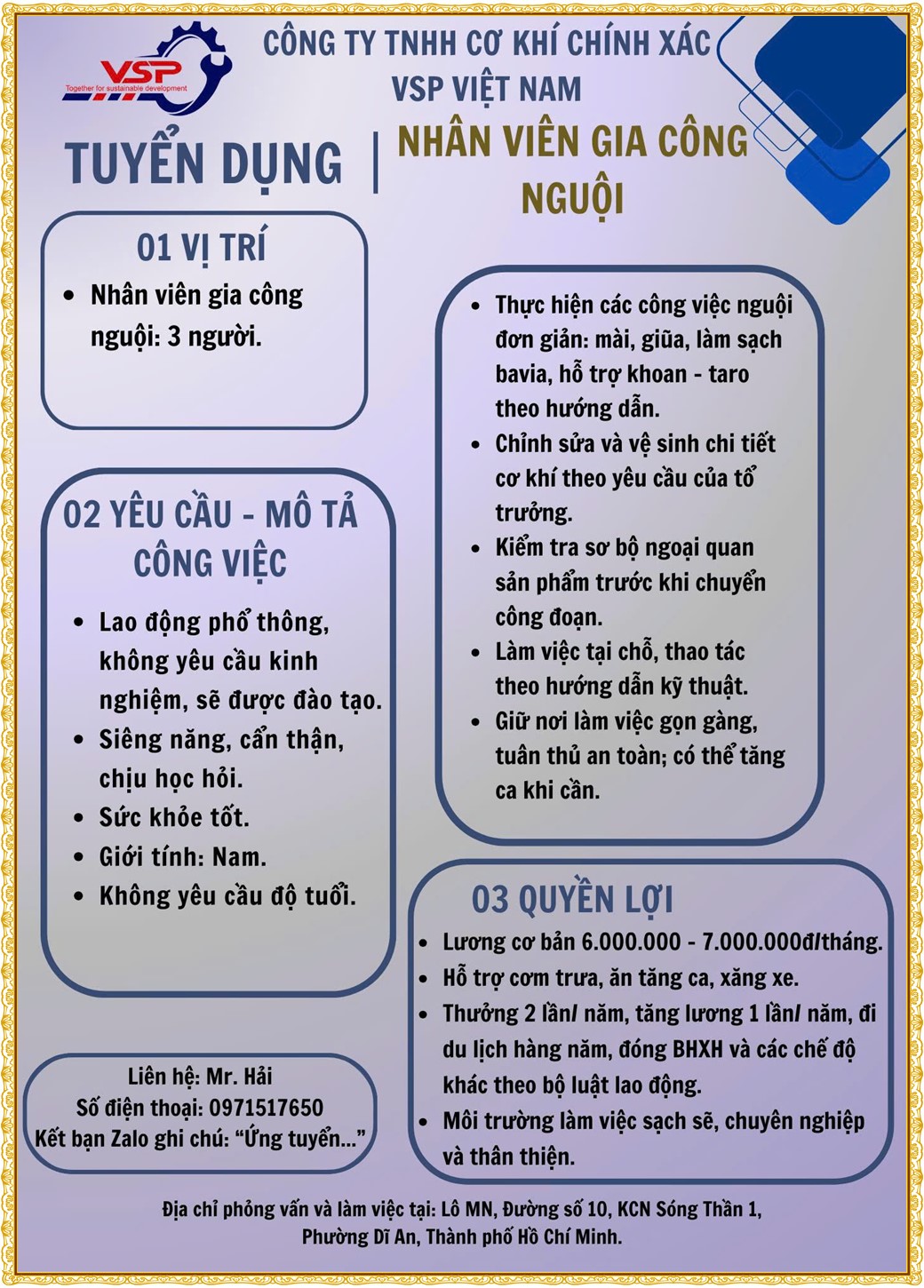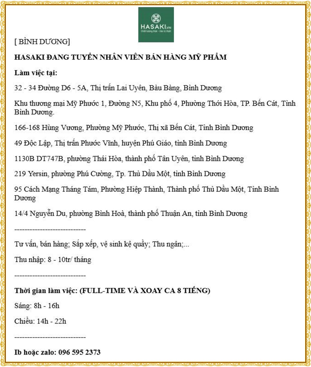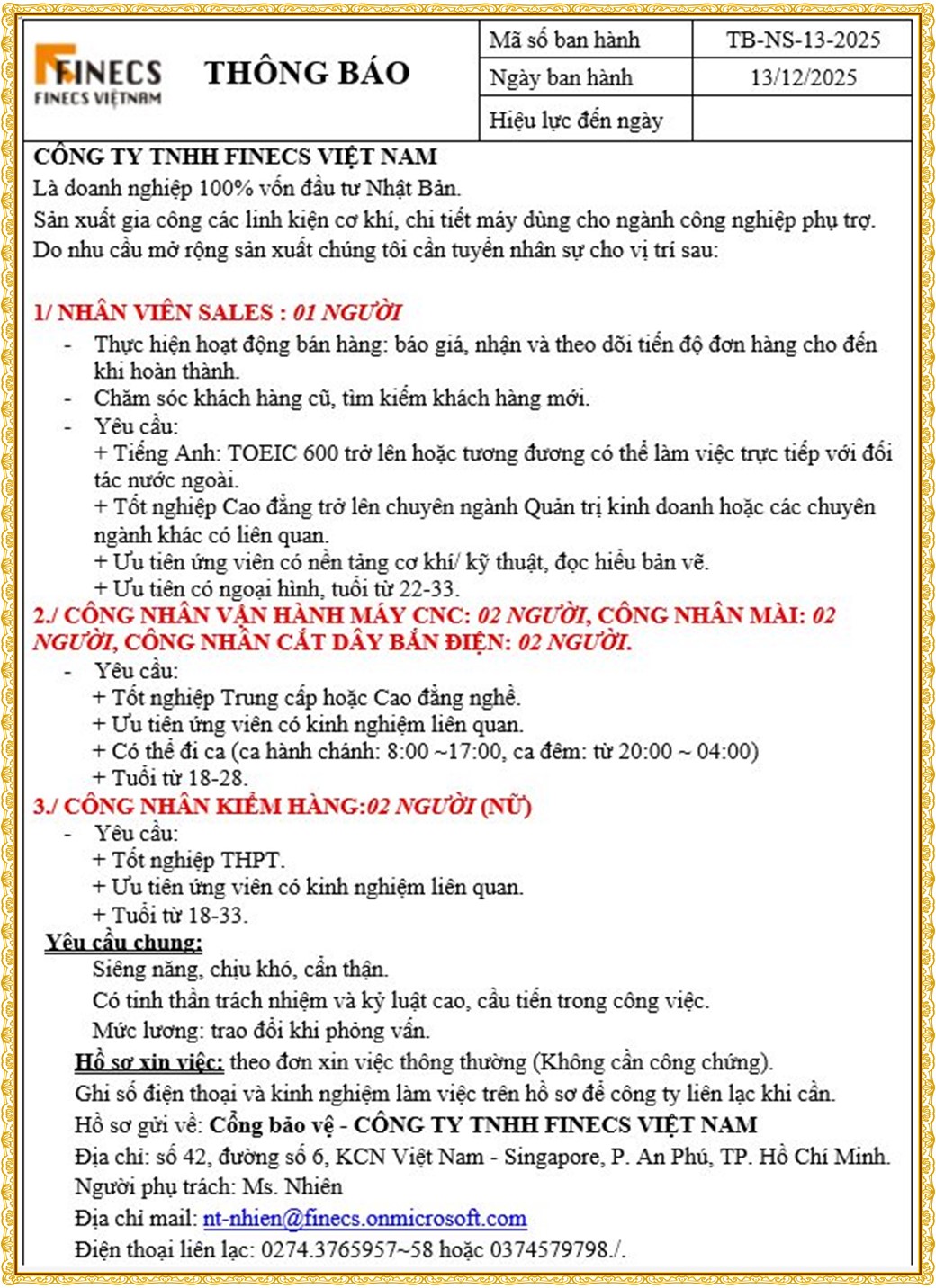 Note: THẬN TRỌNG KHI CÓ BẤT KỲ YÊU CẦU THU PHÍ TỪ PHÍA NHÀ TUYỂN DỤNG !