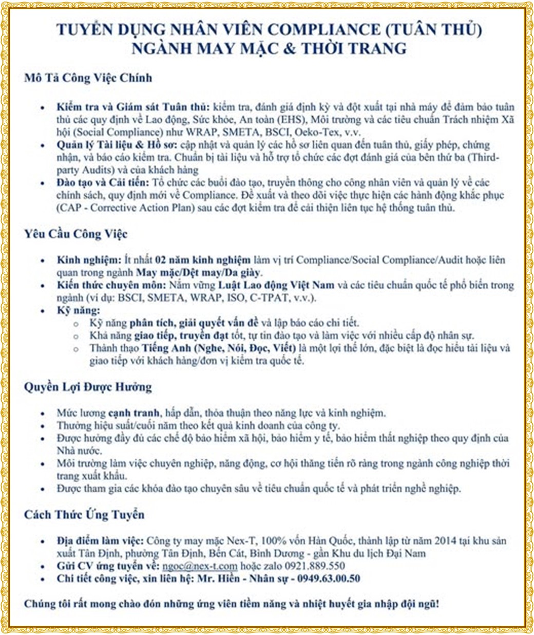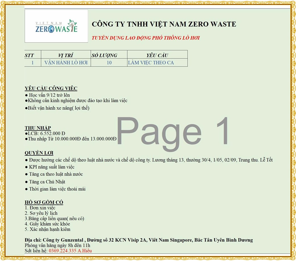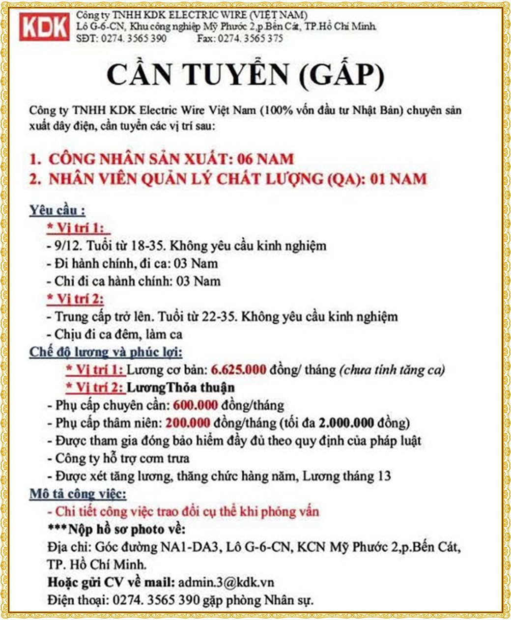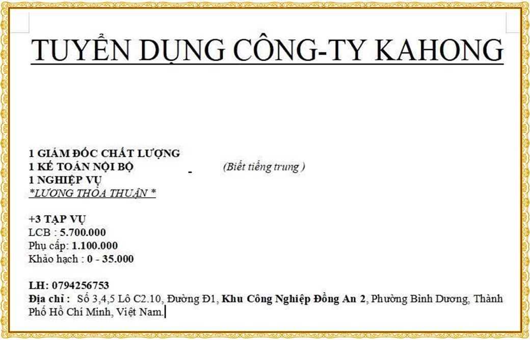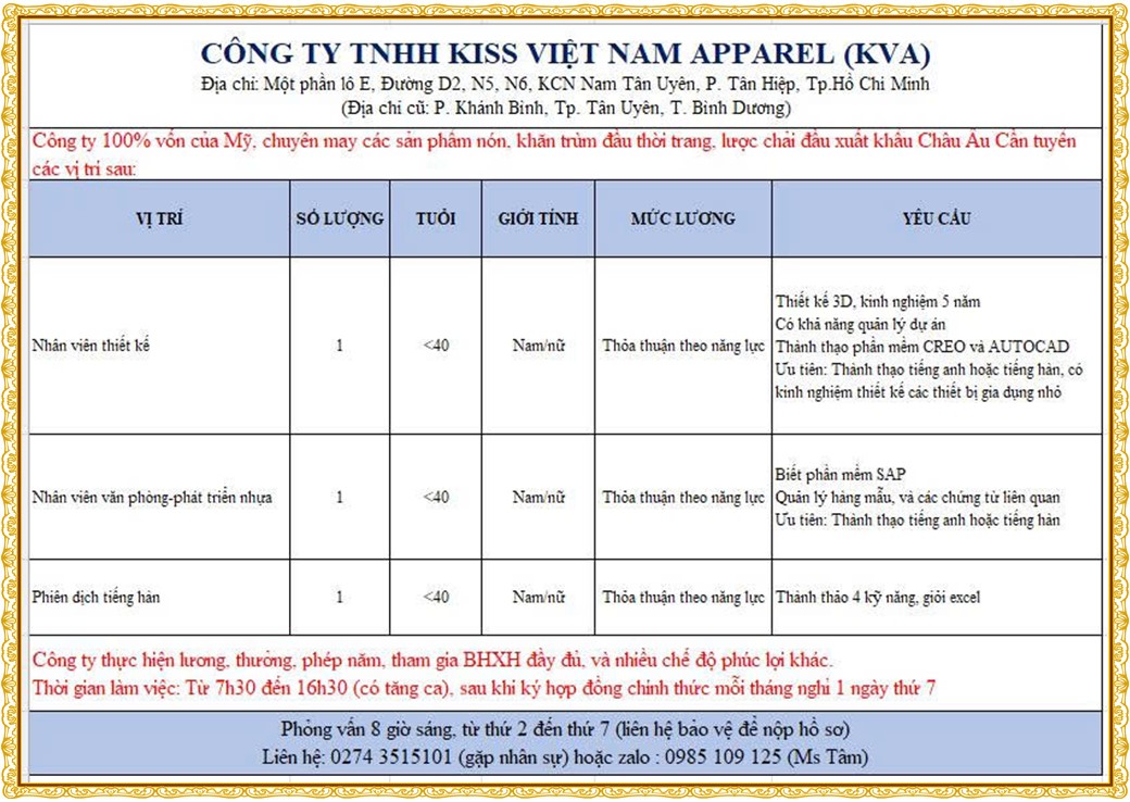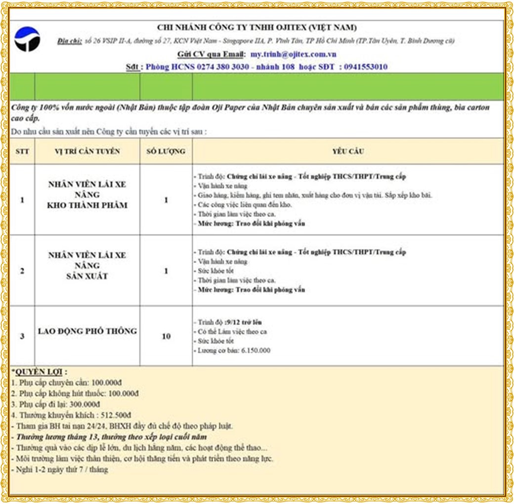 Note: THẬN TRỌNG KHI CÓ BẤT KỲ YÊU CẦU THU PHÍ TỪ PHÍA NHÀ TUYỂN DỤNG !
