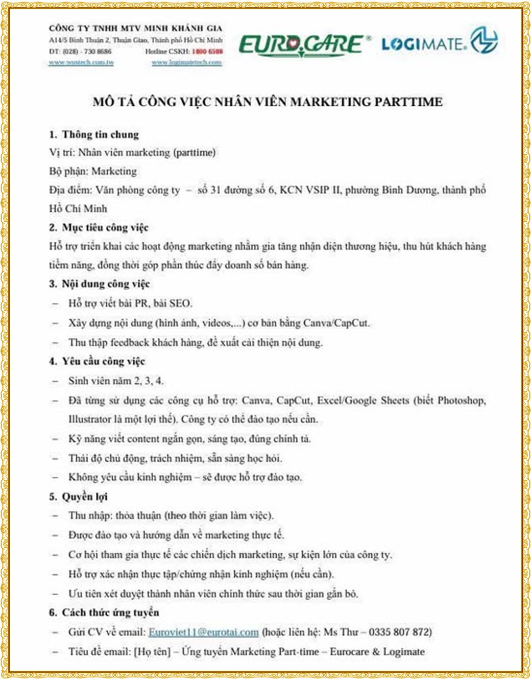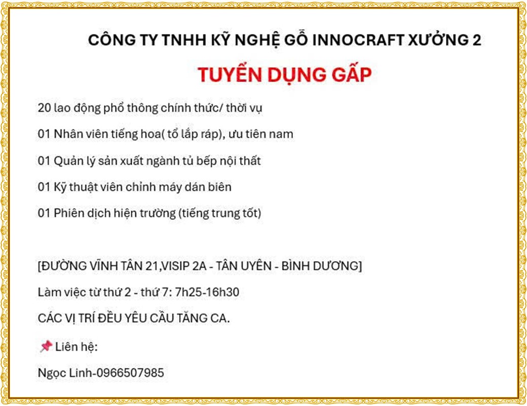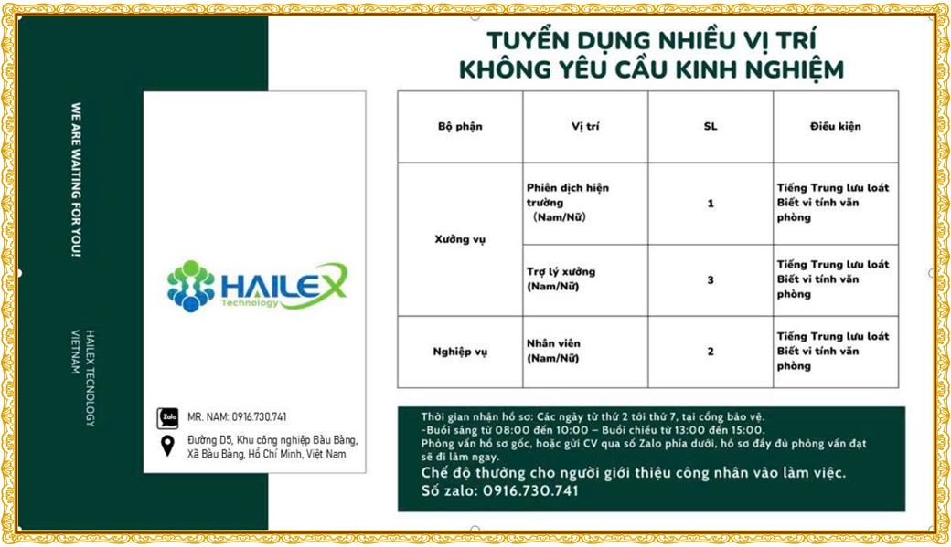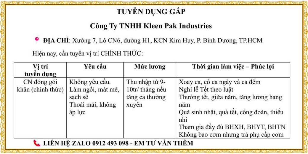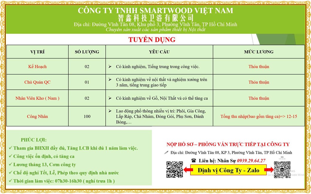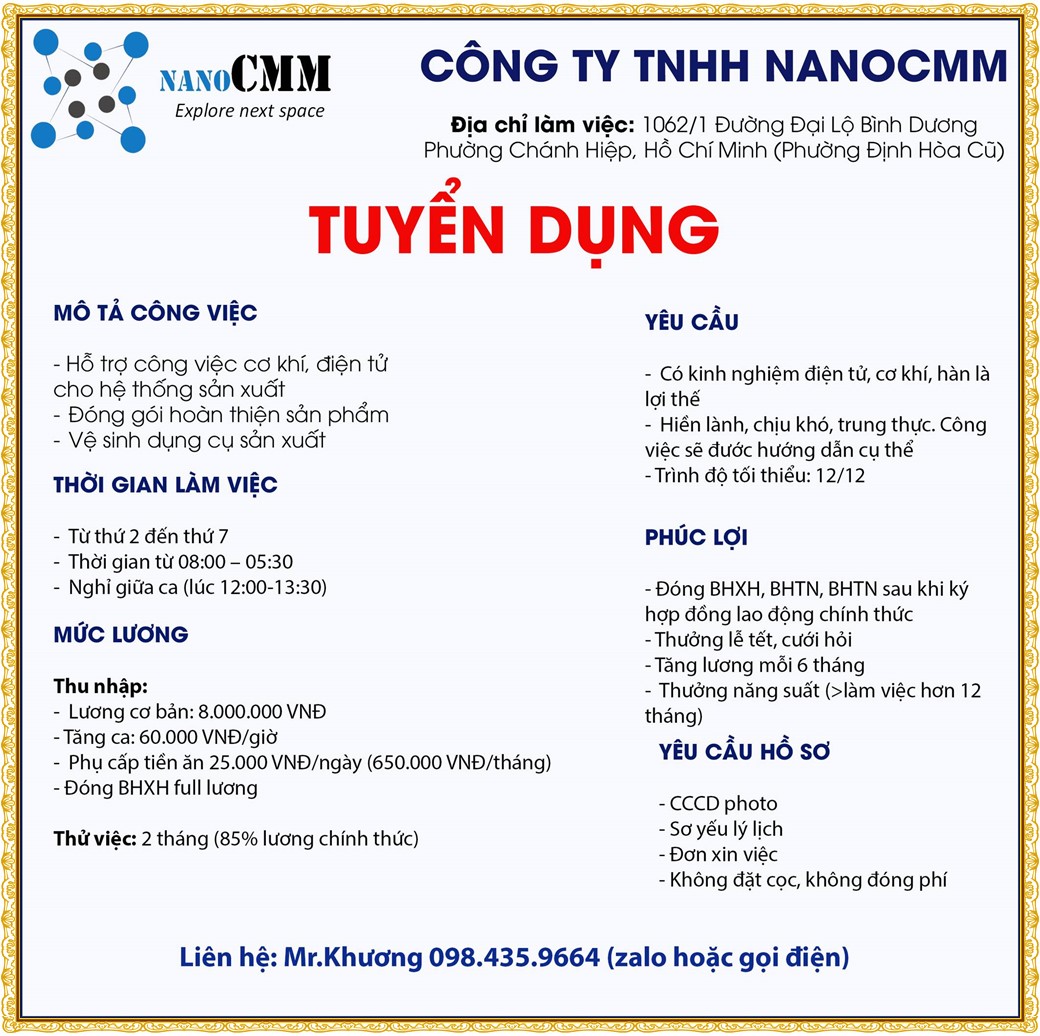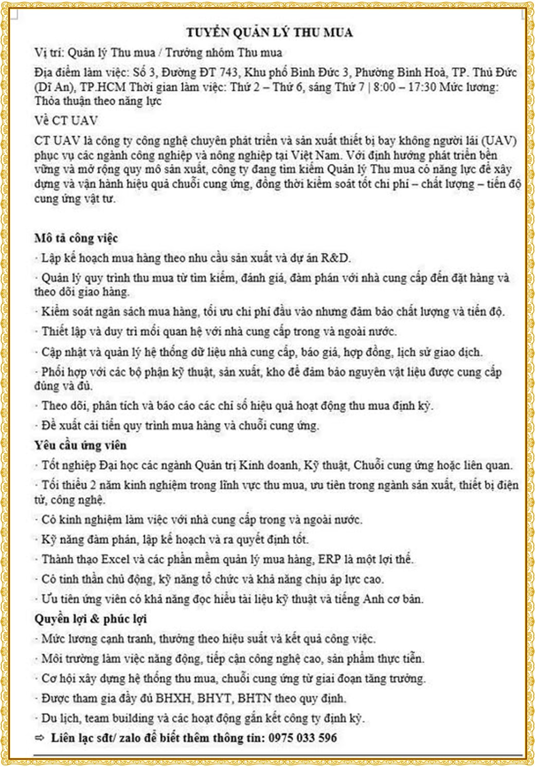 Note: THẬN TRỌNG KHI CÓ BẤT KỲ YÊU CẦU THU PHÍ TỪ PHÍA NHÀ TUYỂN DỤNG !