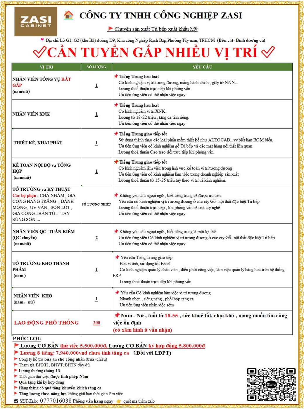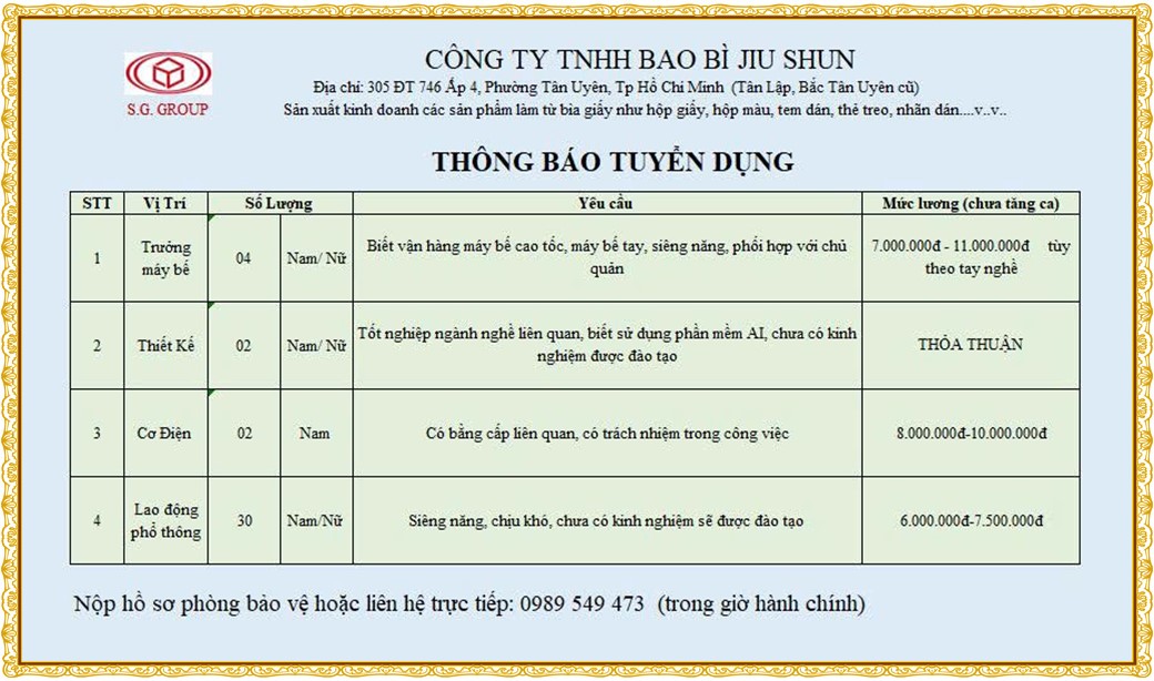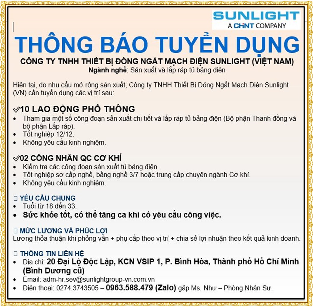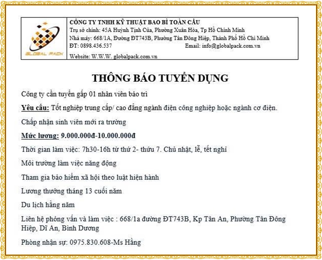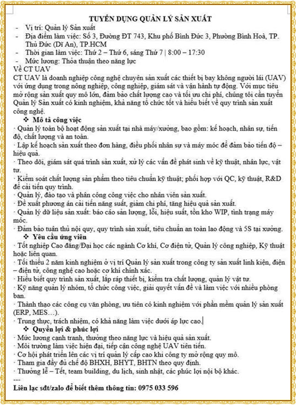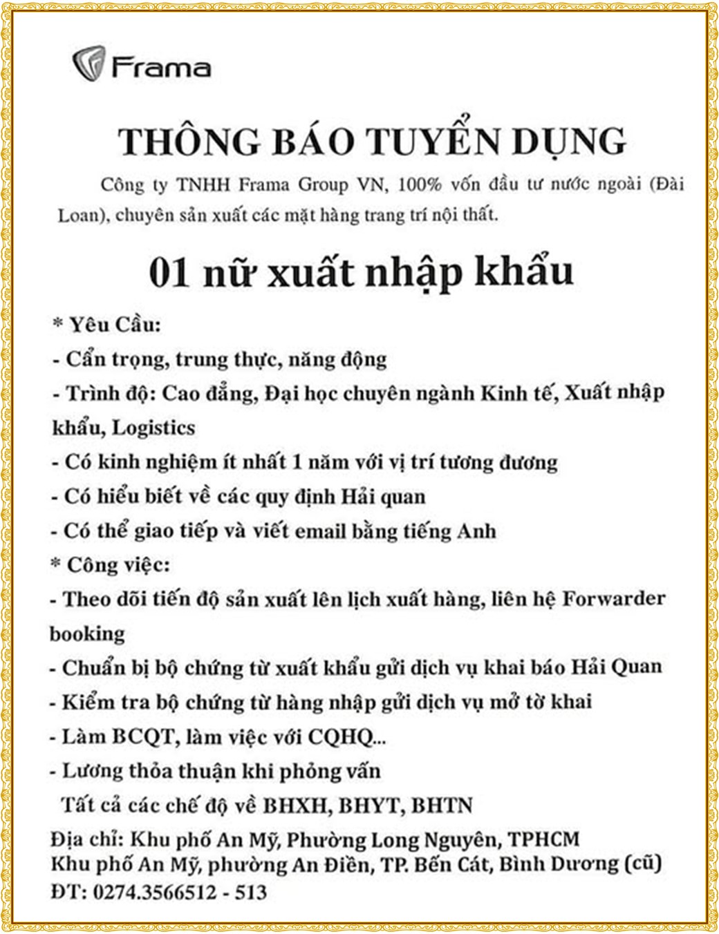 Note: THẬN TRỌNG KHI CÓ BẤT KỲ YÊU CẦU THU PHÍ TỪ PHÍA NHÀ TUYỂN DỤNG !