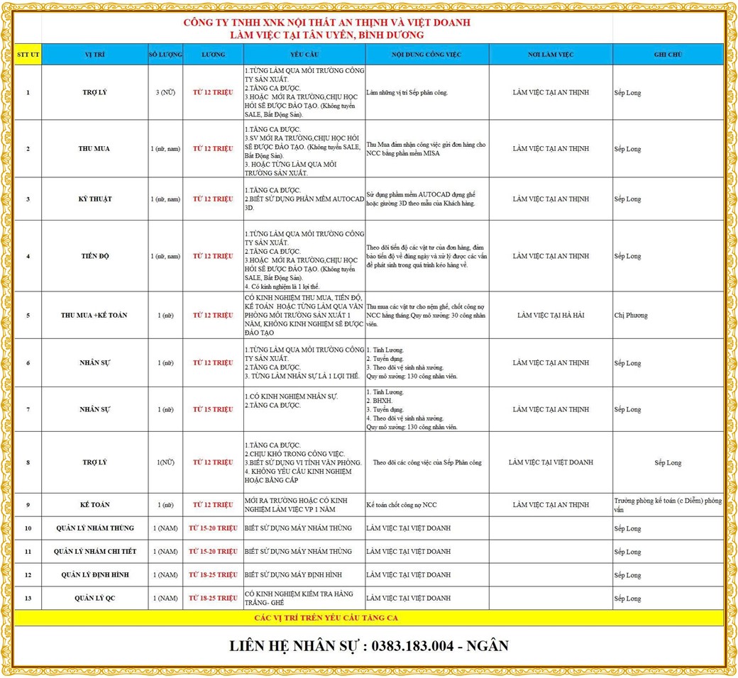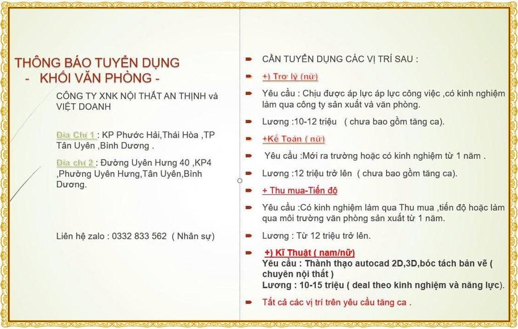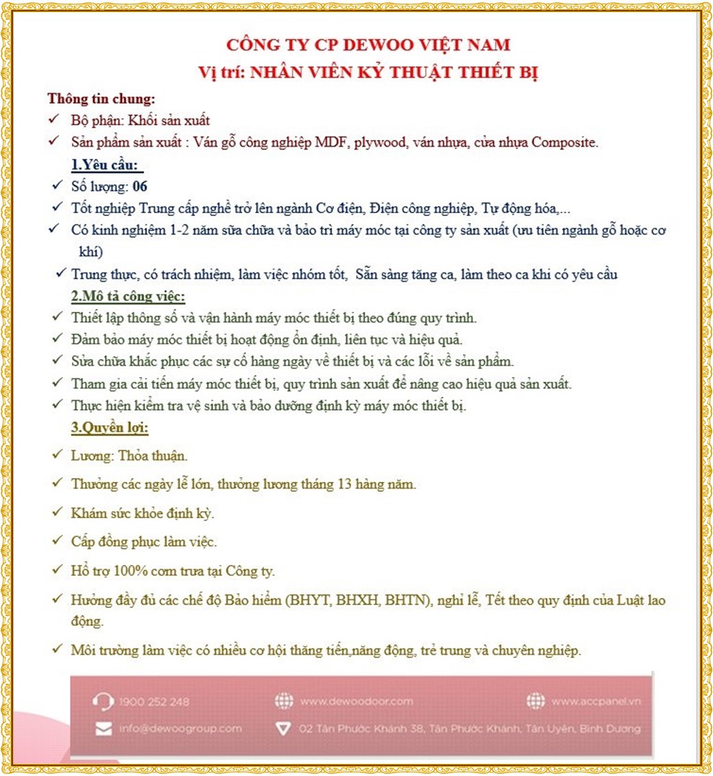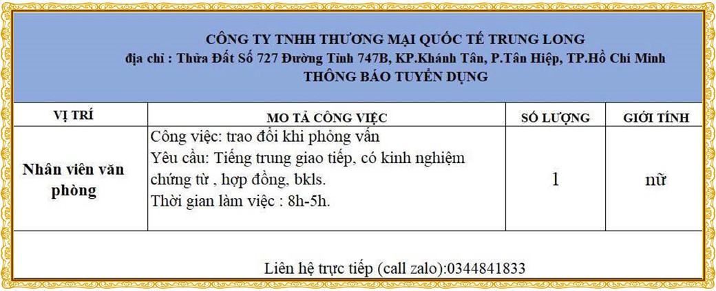 Note: THẬN TRỌNG KHI CÓ BẤT KỲ YÊU CẦU THU PHÍ TỪ PHÍA NHÀ TUYỂN DỤNG !