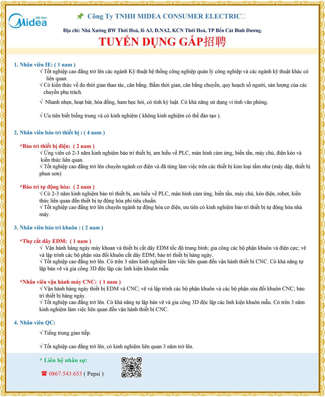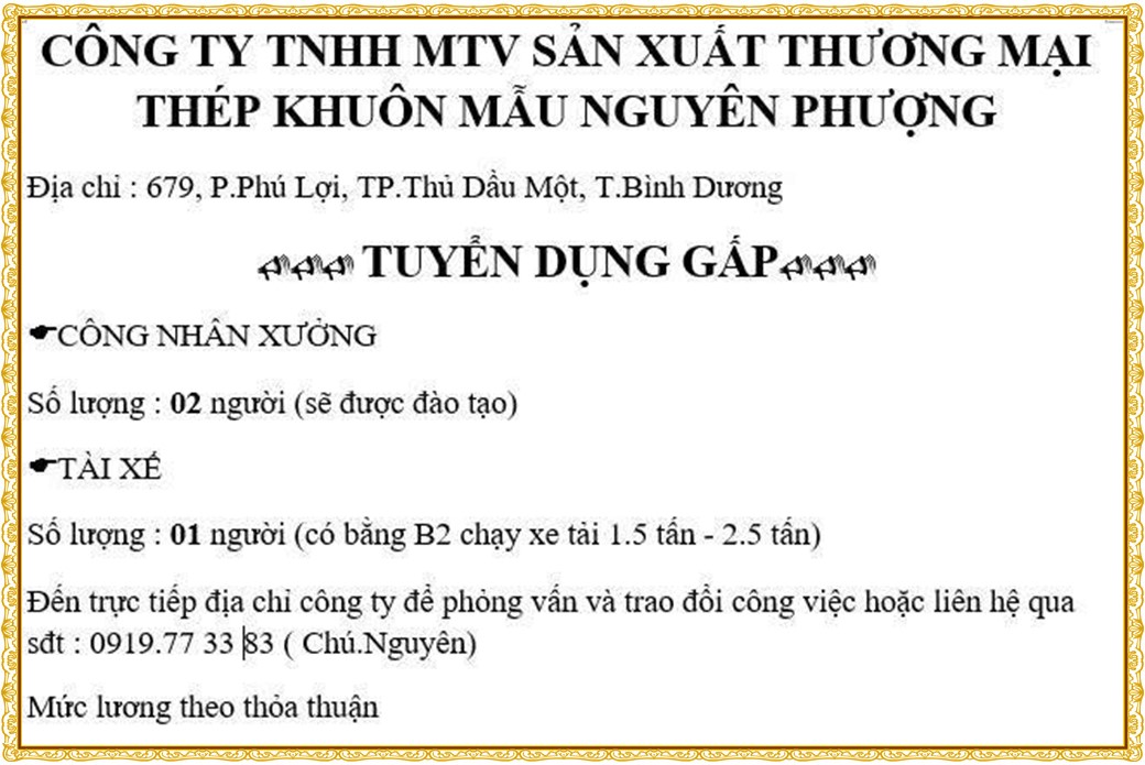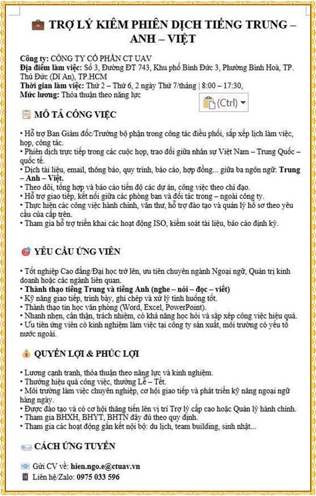 Note: THẬN TRỌNG KHI CÓ BẤT KỲ YÊU CẦU THU PHÍ TỪ PHÍA NHÀ TUYỂN DỤNG !